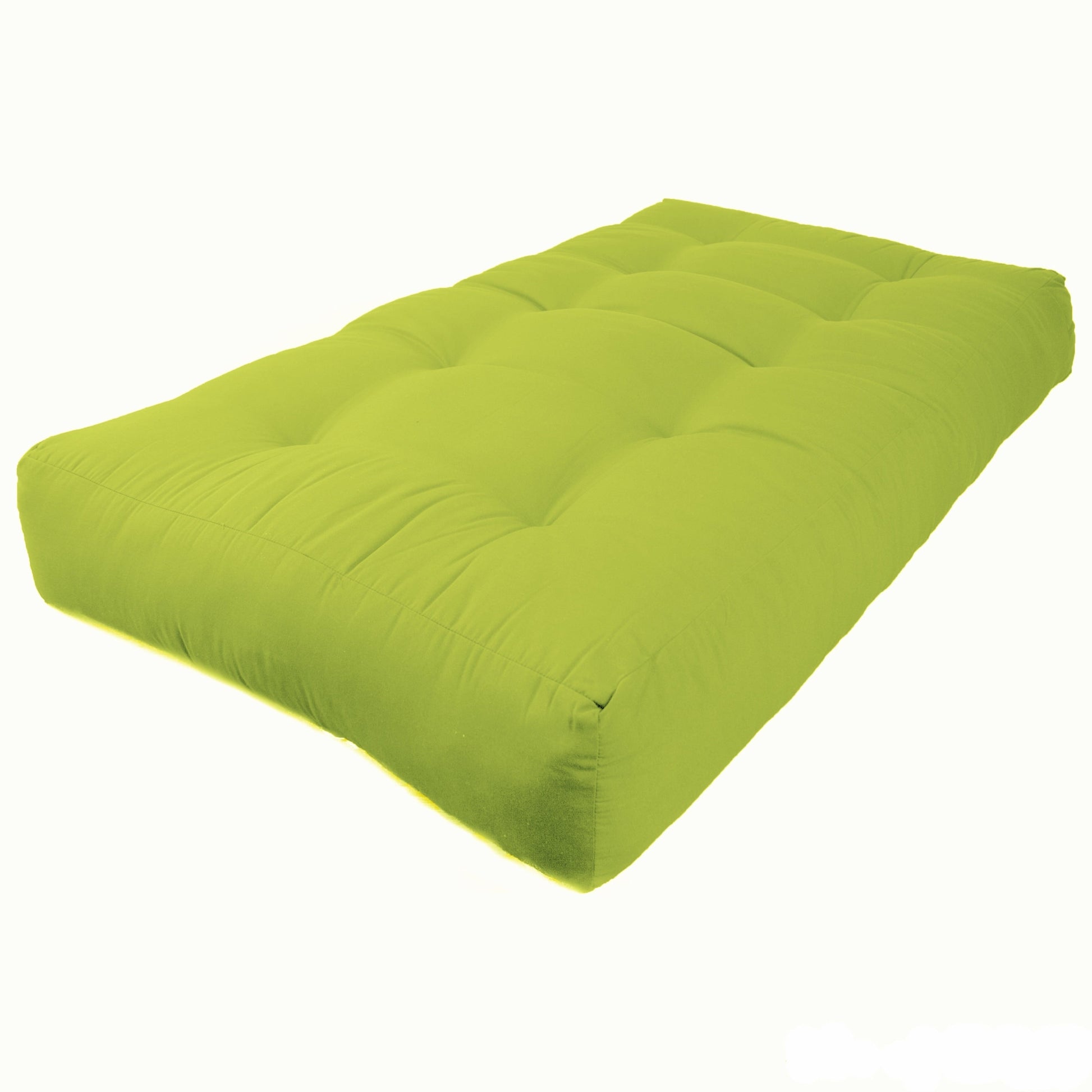 Bring new life to your futon frame with this colorful and comfortable 10-inch thick twill futon mattress. The layered cotton batting/foam interior filling provides lasting comfort and support, while the tufted design keeps the filling in place without shifting. Available in a variety of soft twill fabric colors, this mattress will fit perfectly with any home decor style.