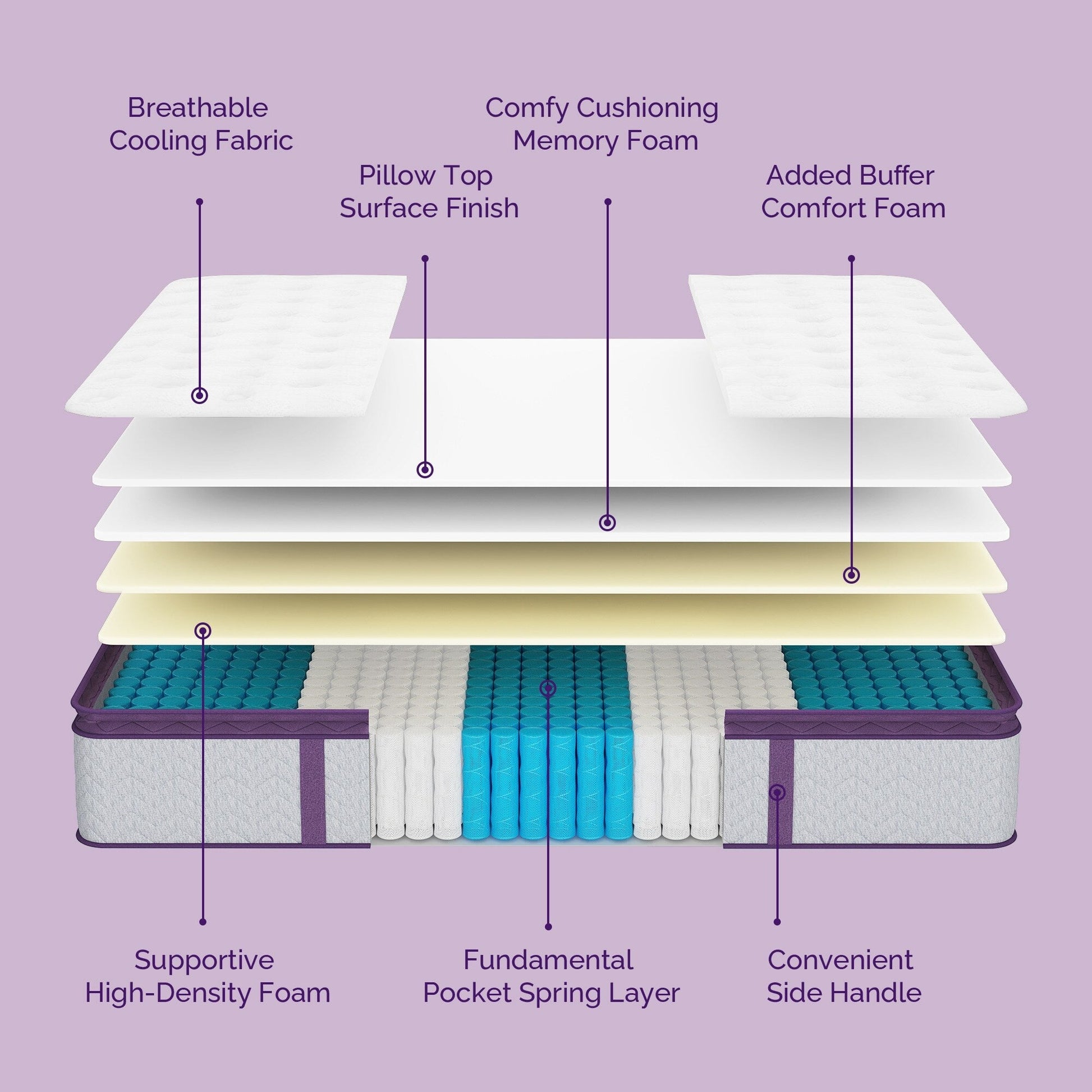 - Ultra quiet - due to the pocket spring + multilayer foam design, this mattress can effectively absorb noise and vibration; no wake-up-up caused by tossing and turning, and no disturbing companion.