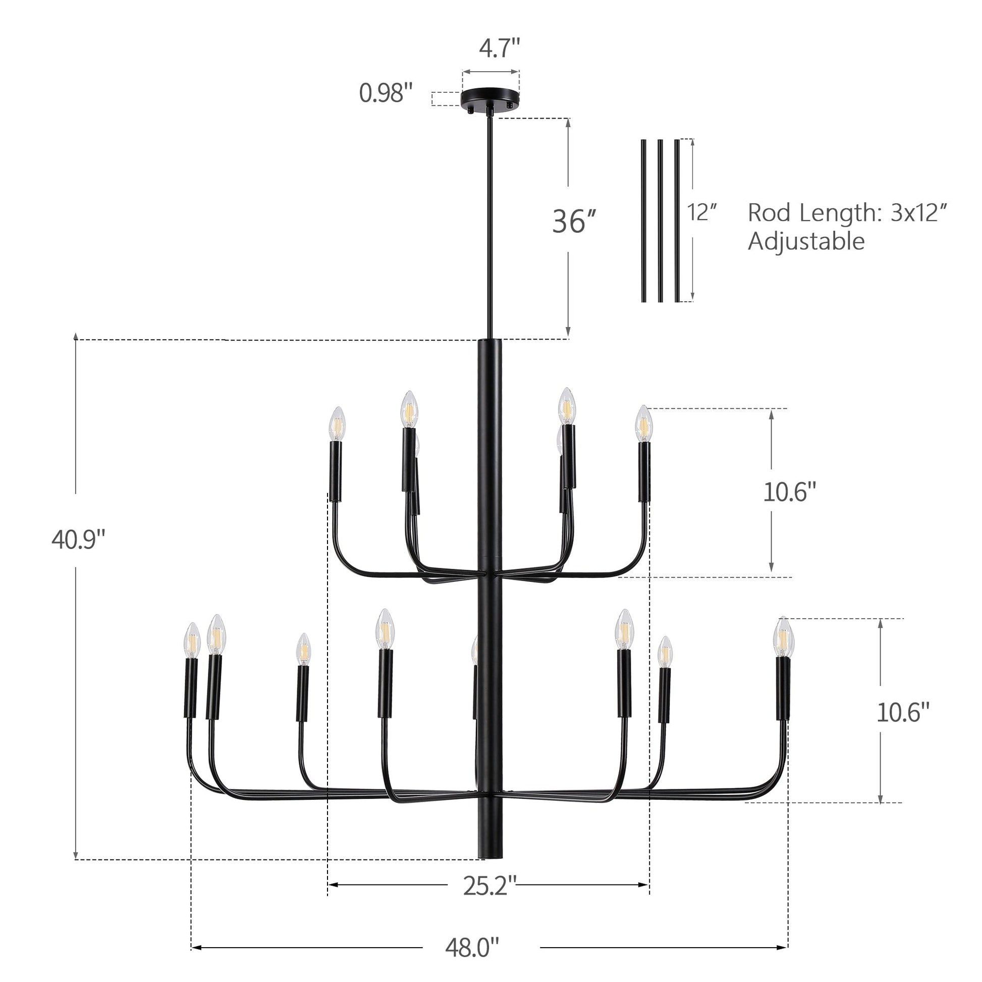 15-Light Minimalist Candlestick Chandelier, 2 Tier Ancient Design - 48