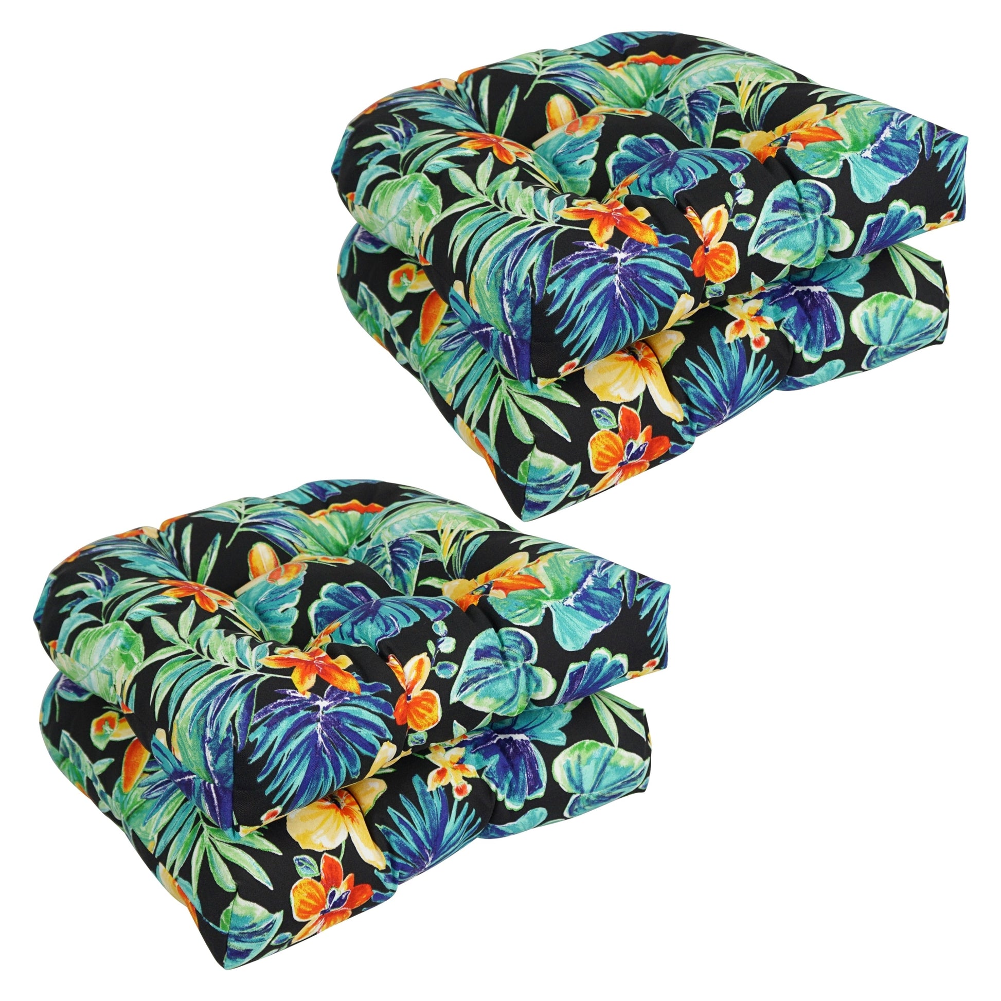 Add a touch of comfort and splash of color to your patio or garden furnishings with this rounded back outdoor chair cushion set. Crafted of durable, fade-resistant spun polyester outdoor fabric, these cushions include a classic circle-tufted design that gives these cushions ample cushioned loft. All cushions are identical and reversible and are available in a wide variety of patterns ranging from the timeless to the trendy, allowing for a perfect fit with your existing patio furnishings.