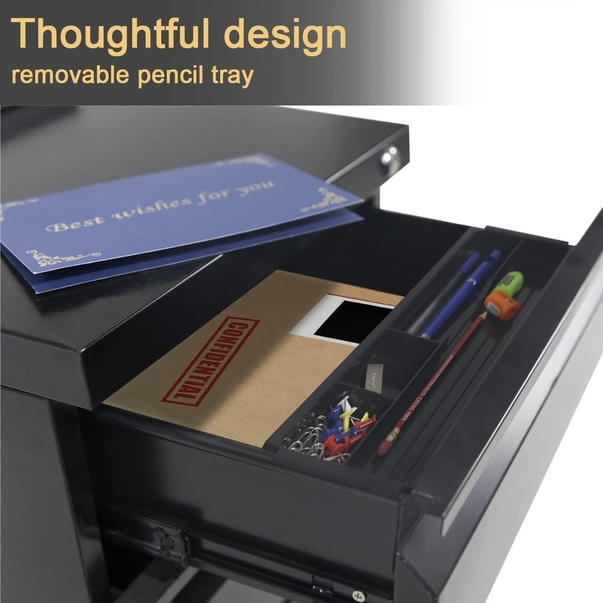 3 Drawer Metal Locking File Cabinet for Home Office, Rolling Cabinet Fully Assembled