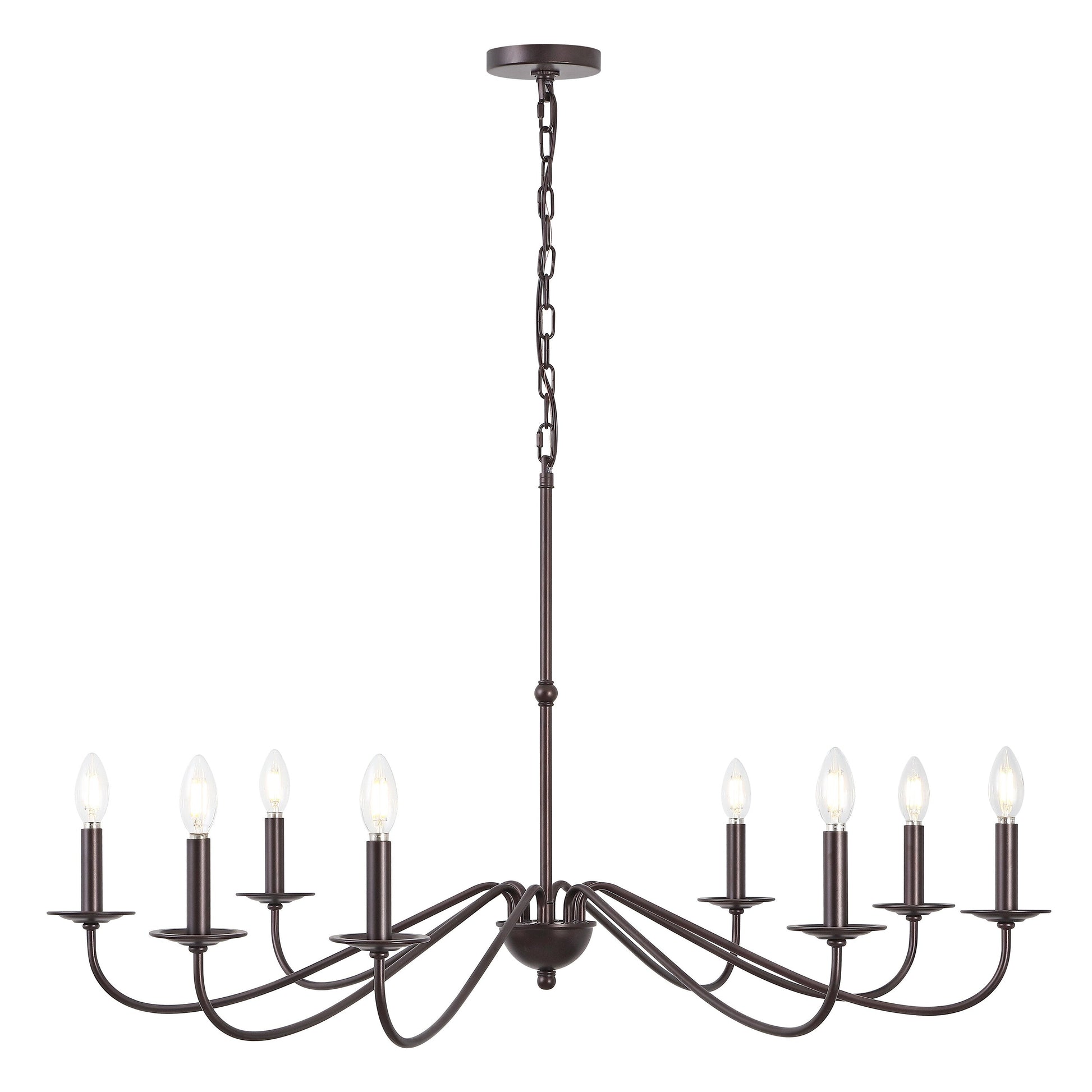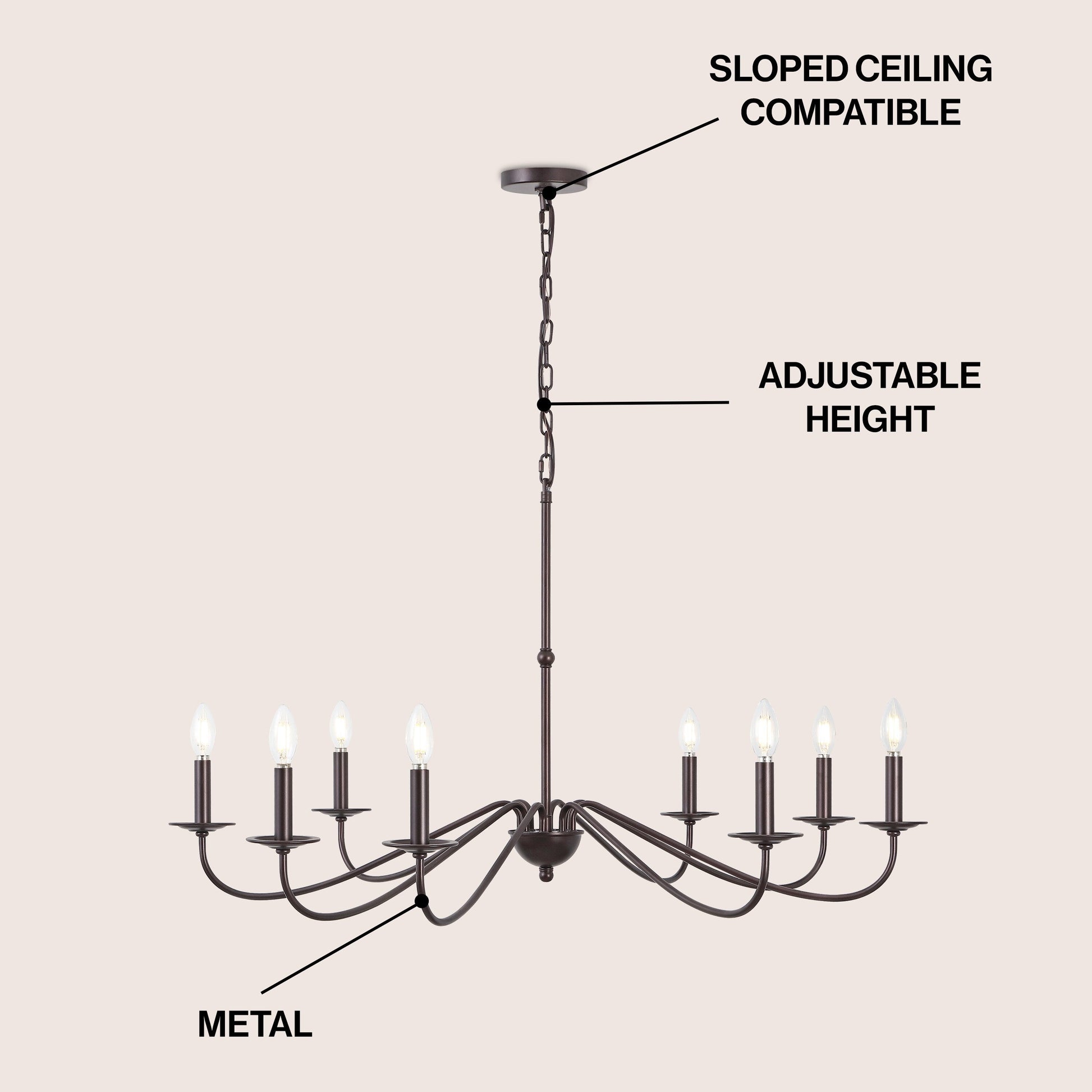 - Adjustable-height chandelier works best for ceilings up to twelve feet high