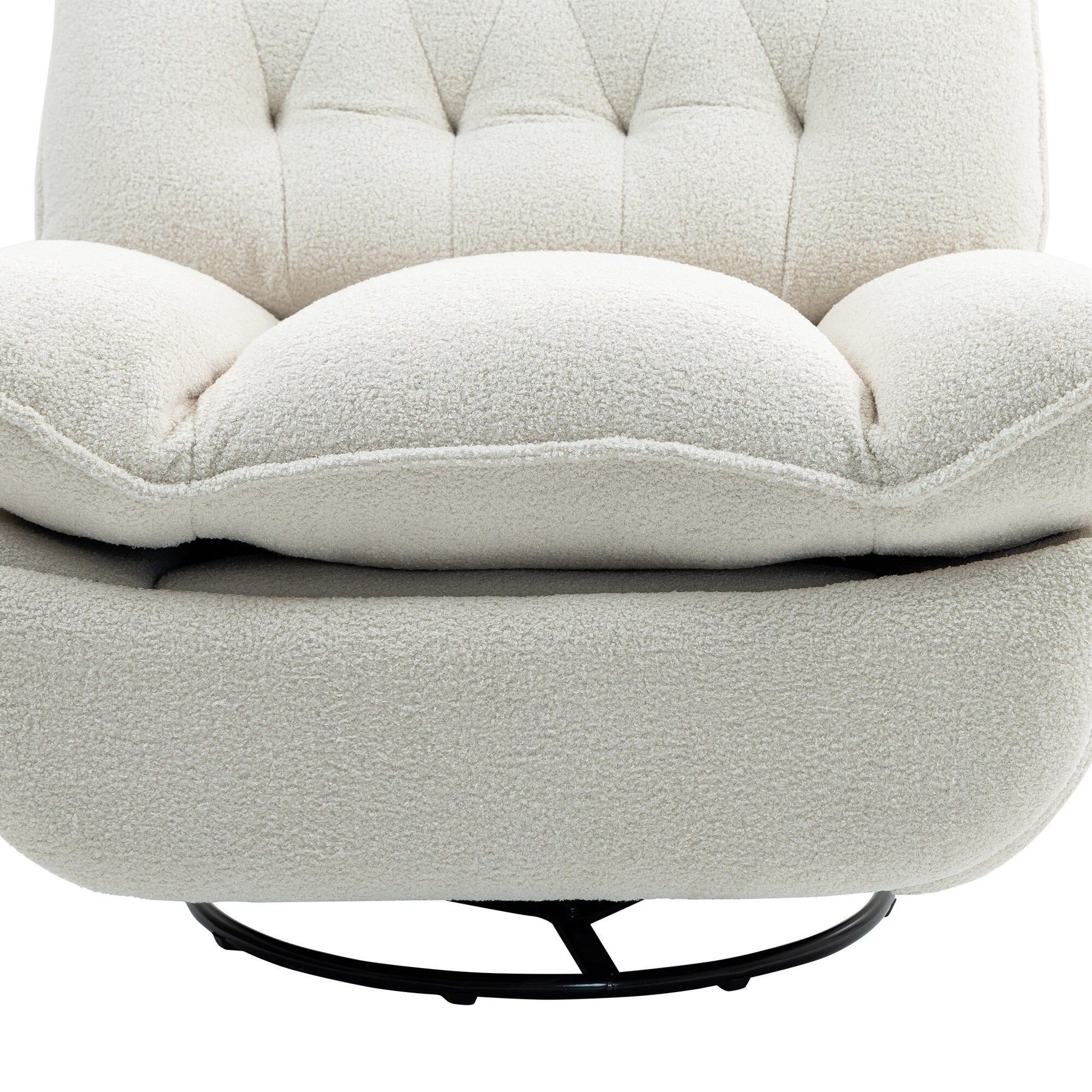 Simply lean back to recline using your body weight, and push forward to return to an upright position. Extended footrest for complete relaxation, making it for activities such as watching television, sleeping and reading.The glider rocker armchair allow you to swivel 360°. The backrest can be tilted from 90 degrees to 135 degrees, Footrest adjustment angle is 0-90°, to meet the needs of different scenes and you can fully relax in this comfy rocking nursery chair.