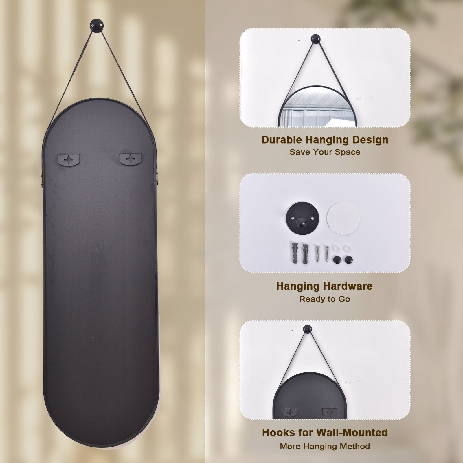 48 x 16 Full Length Hanging Wall Mirror with Leather Strap