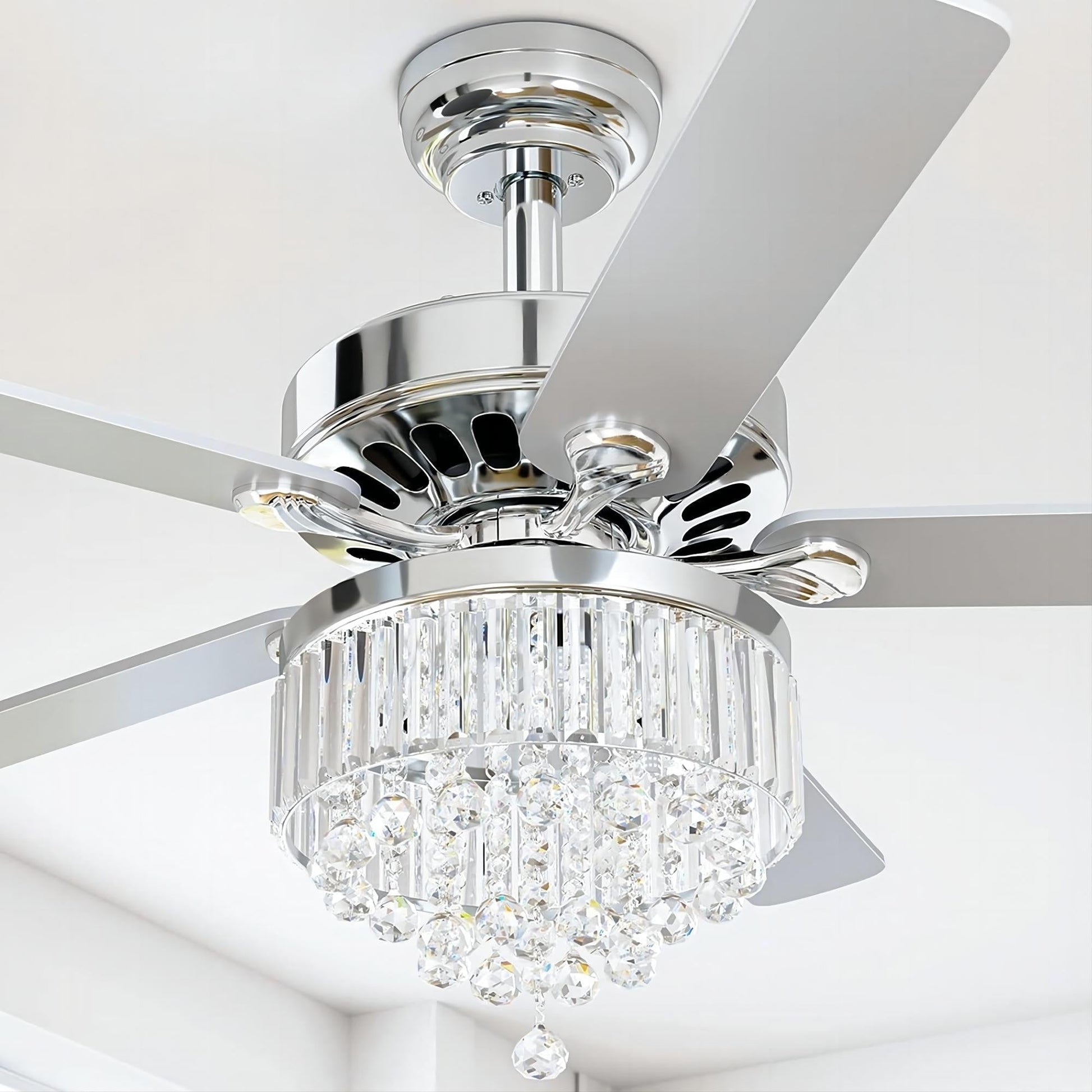 52-inch Wooden 5-Blade Crystal Ceiling Fan Chandelier with Remote