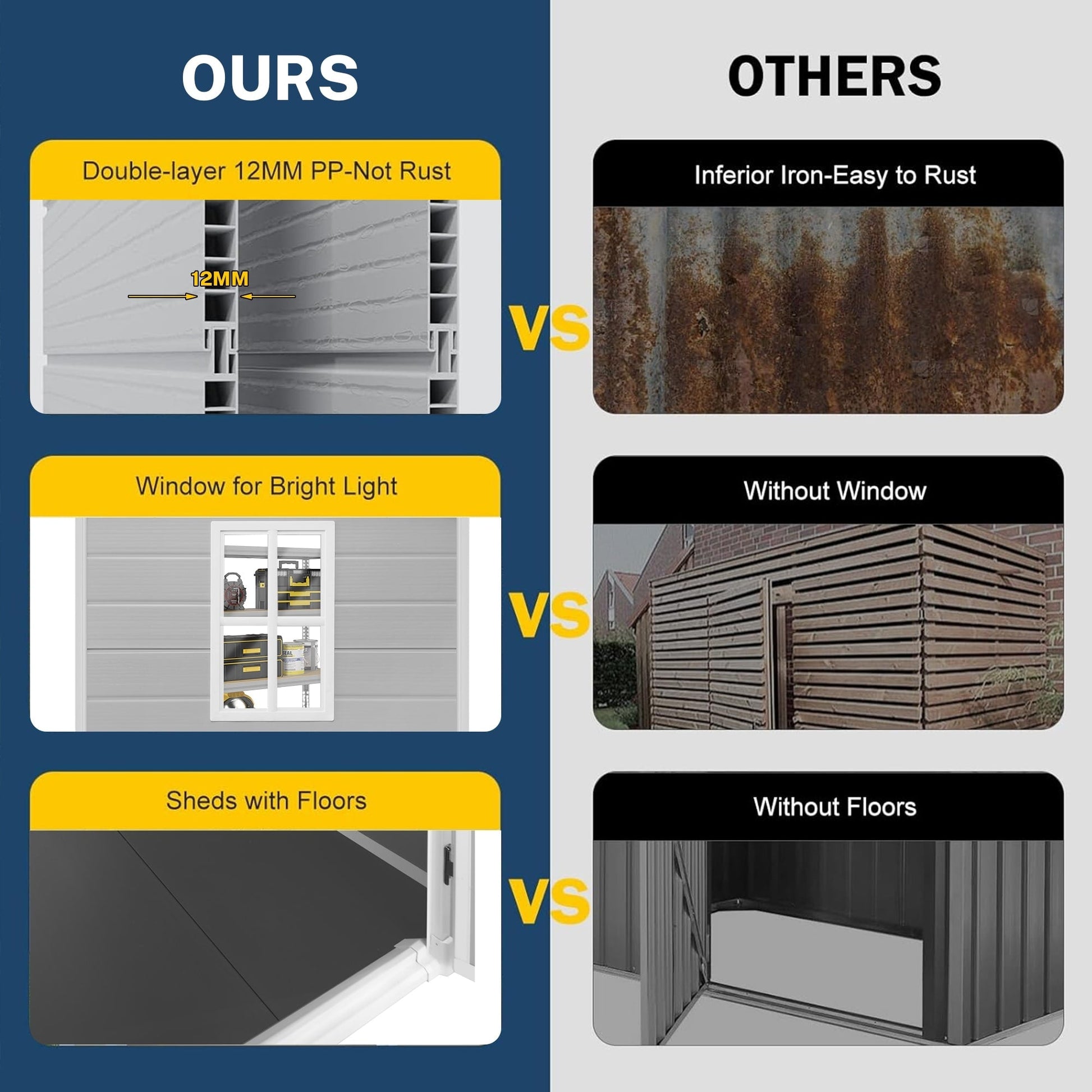 6 ft x 4 ft/6 ft x 8 ft/8 ft x 6 ft/8 ft x 10 ft All-Weather Resin Outdoor Plastic Storage Shed w/Floor, Spire Tool Shed