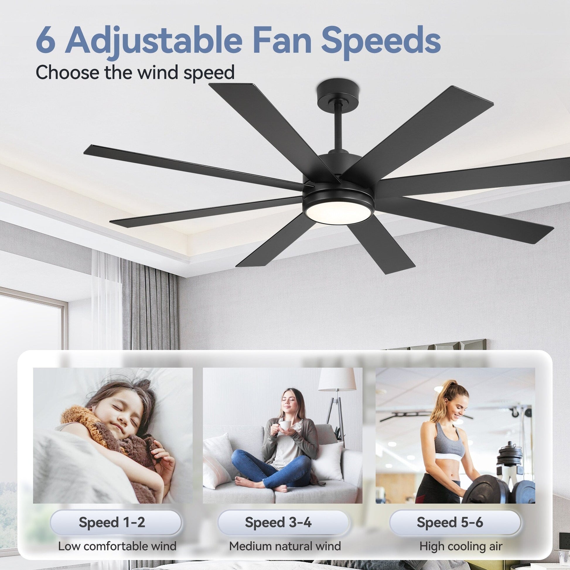 - 6-speed fan control in forward and reverse