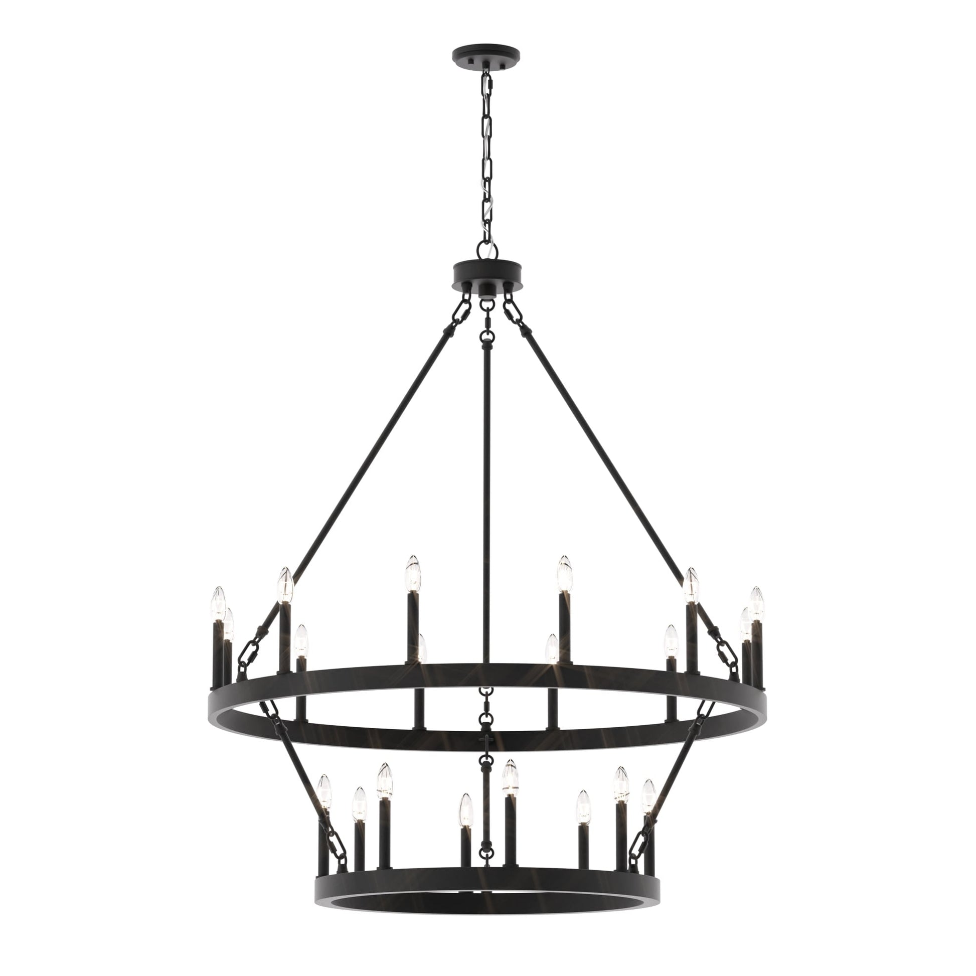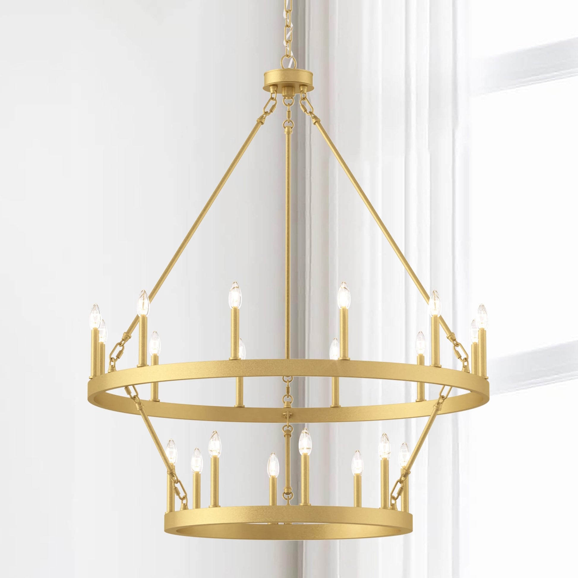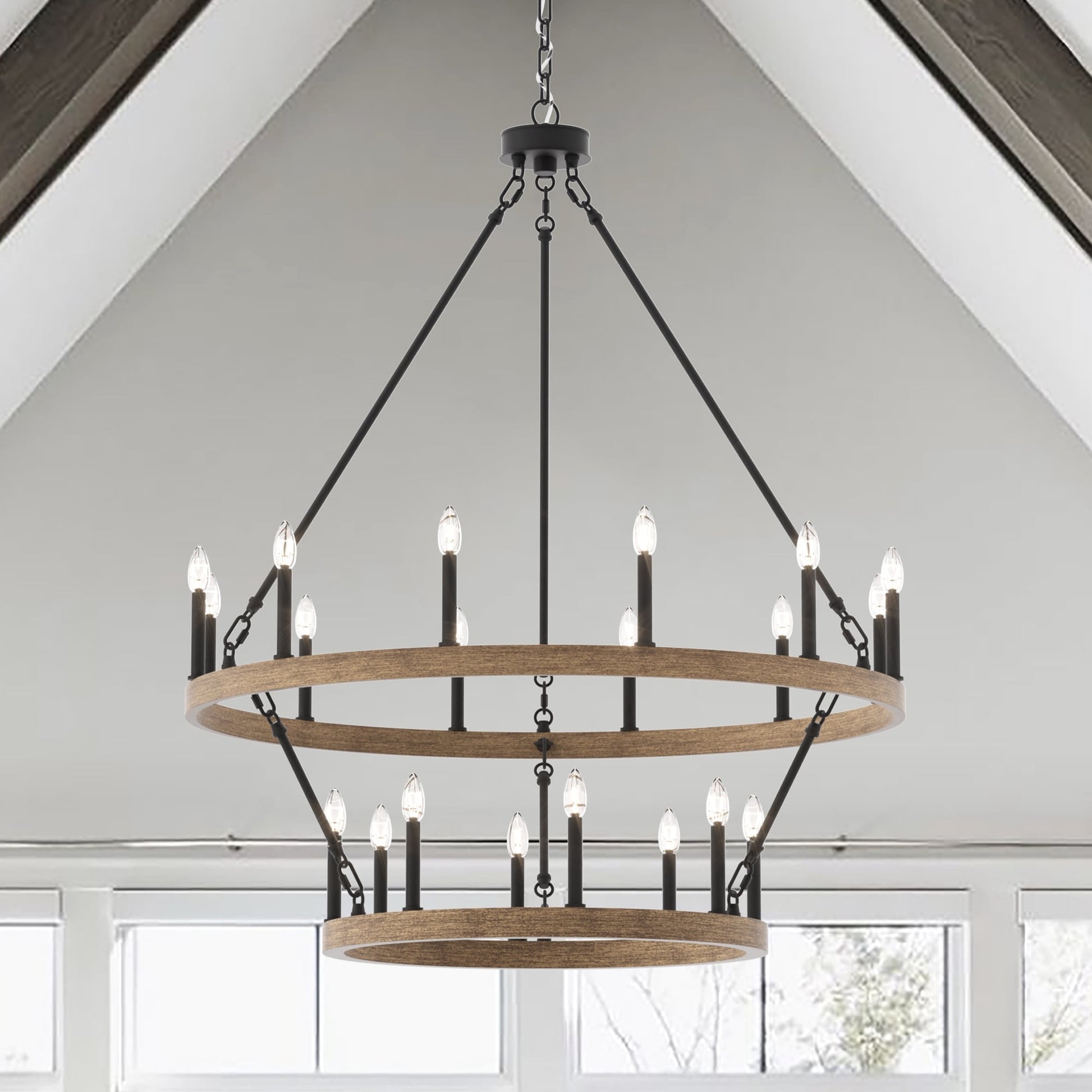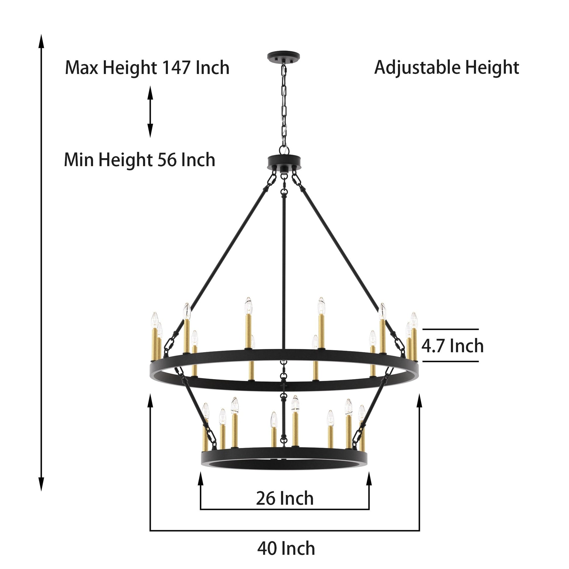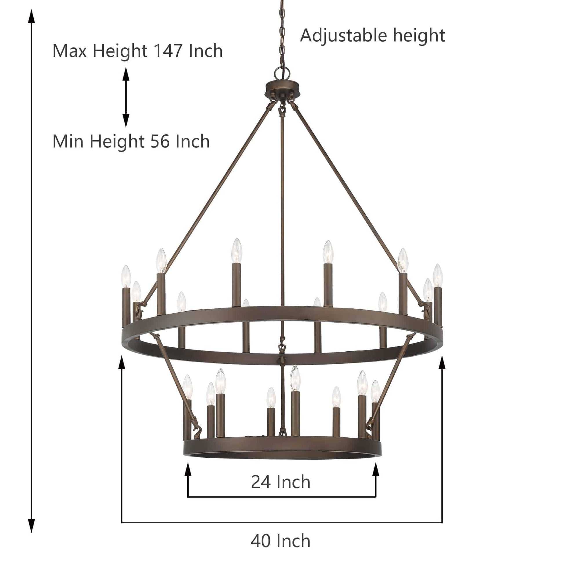 Brighten up your living space with the Farmhouse Rustic Large Wagon Wheel Chandelier, made of steel and available in a variety of colors, this chandelier is durable and adds charm to a variety of styles. With 2-tier wagon wheel and twenty candlestick, which is perfect for fully illuminating a large space like living room, dining room, and large two story foyer/ entryway. Customize your space with candle-base bulbs for a vintage french country look or stick bulbs for a modern touch.