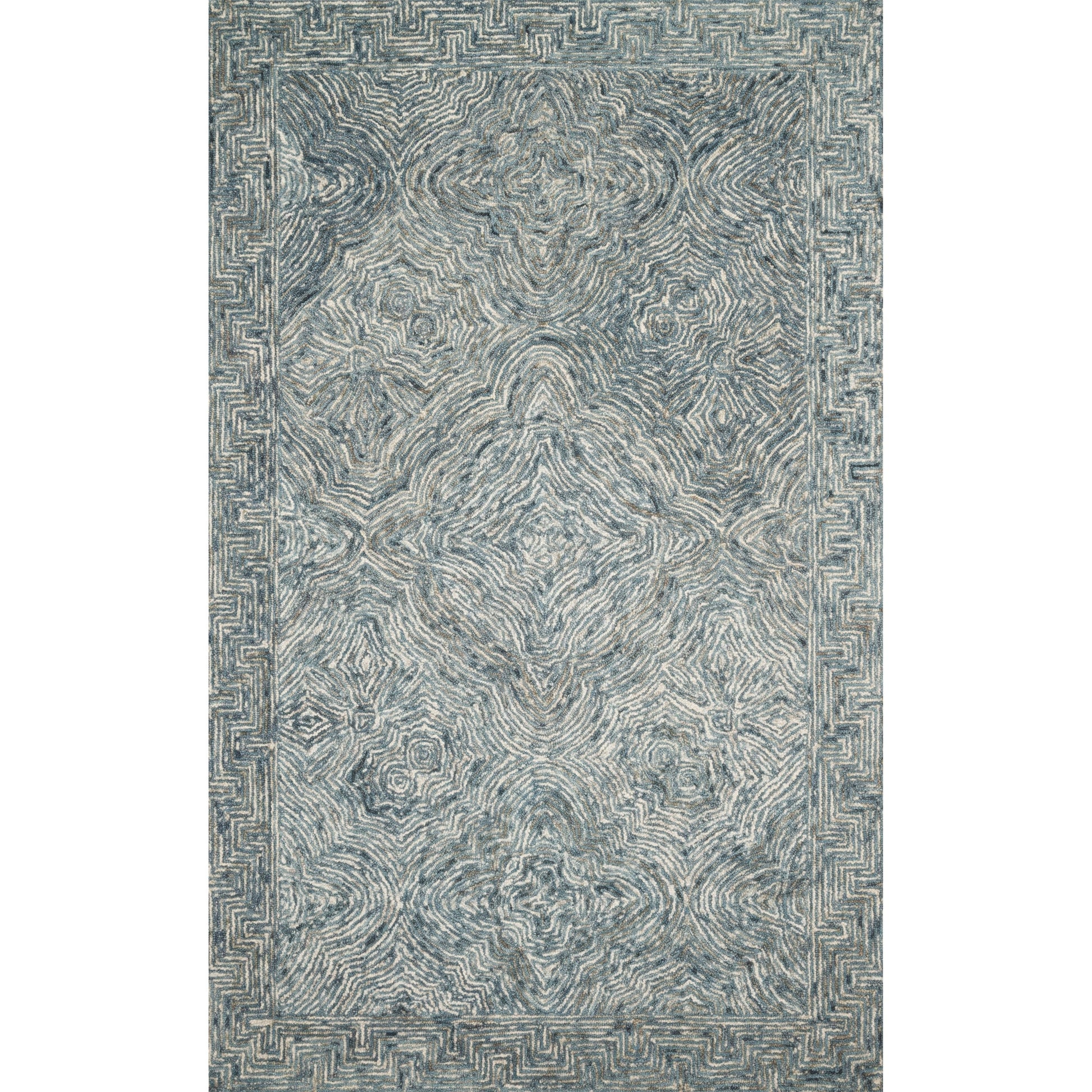 Add a touch of contemporary style to your living space with this stunning Aspen Denim Wool Hand-tufted Contemporary Area Rug by Alexander Home. This piece is crafted with love, using 100-percent wool for durability and cotton canvas backing. The striking, geometric swirl pattern in blue, cream, and ivory colors makes it the perfect addition to your favorite room.