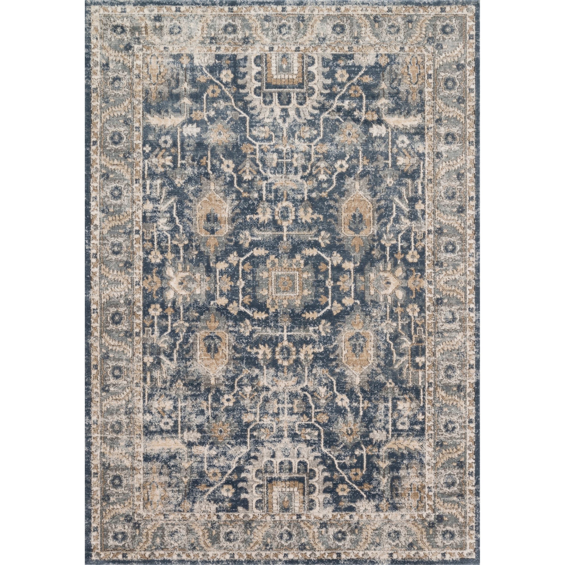 Elevate your home decor with the Alexander Home Josefina Ornamental Ironwork Traditional Rug. This rug boasts a unique ornamental ironwork pattern in a palette of smoke blue, ivory, cream, grey, and beige colors. Power-loomed of polypropylene, polyester, and cotton, this rug is soft underfoot and long-lasting. Available in denim/pebble or ivory/sand color palettes, it features a bordered design and a cotton and polyester backing. Easy to maintain with spot cleaning and vacuuming, this rug contains no latex.