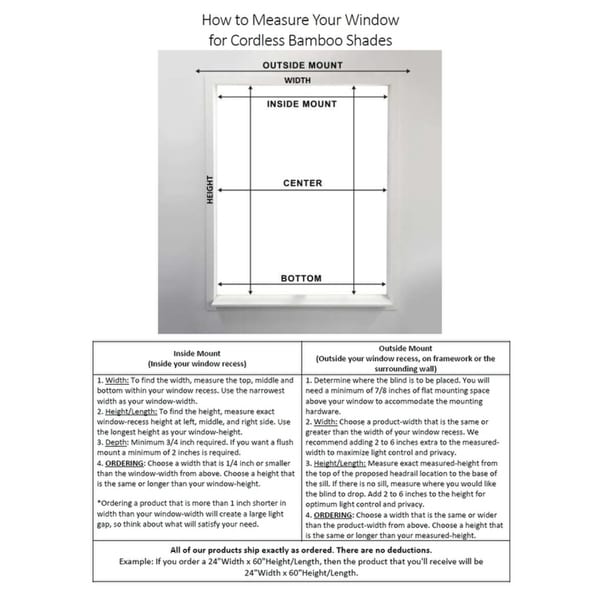 Bring the beauty of natural bamboo into your home with these Java Deep Cordless Lift Bamboo Roman Shades. Constructed with sturdy bamboo, these shades provide just the right amount of shade on bright days while adding a subtle accent to your decor. The cordless design allows for simple operation and an uncluttered look, making it child and pet-friendly. These versatile shades can be mounted both inside or outside the window frame and are perfect for softening incoming breeze or creating a zen spa-like atmosphere in your bathroom. Please note that these shades are intended for indoor use only.