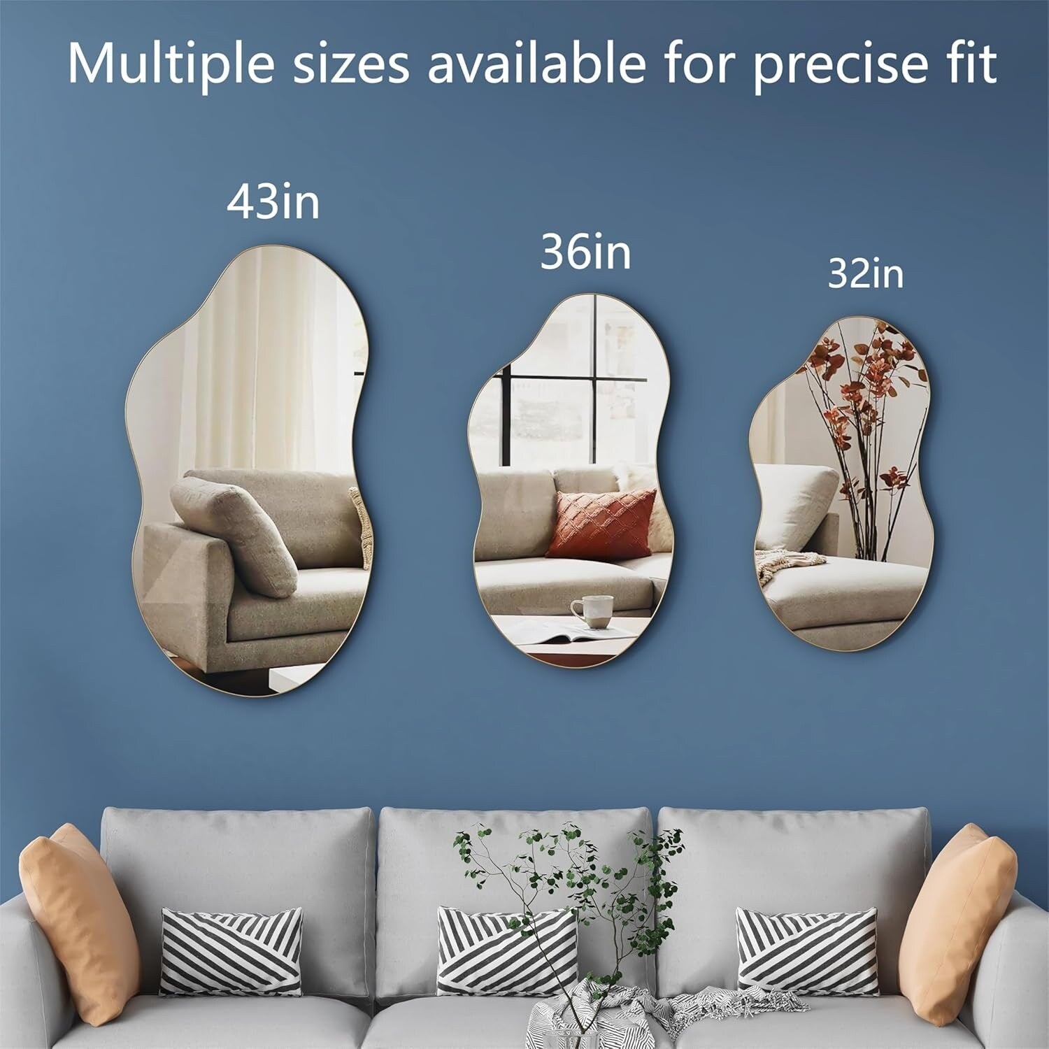 - 【Multiple Choices】: This irregular mirror is available in bronze, black and silver, and the sizes are 32 inches, 36 inches and 43 inches respectively. Perfect choice to meet your space needs.