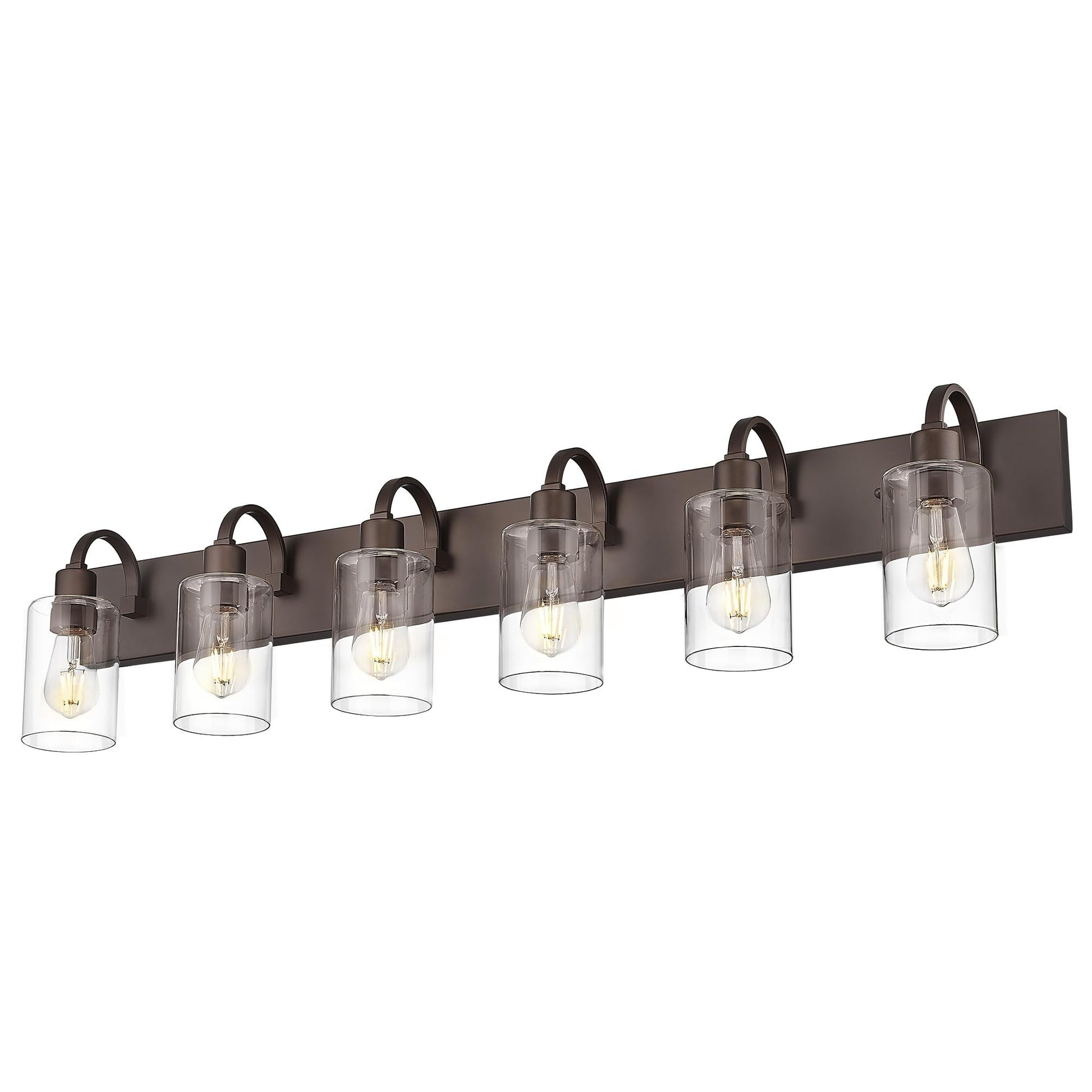 Bring a touch of modern elegance and classic charm to your bathroom with this farmhouse wall light fixture. The clear glass shade has a unique handmade appearance and combines with an oil-rubbed bronze finish to create an industrial vibe. Perfect for a variety of spaces including bathrooms, bedrooms, living rooms, and more.
