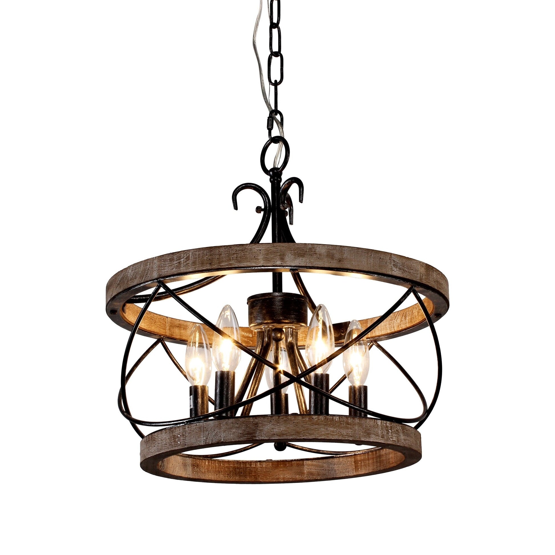 Bella Depot 5-Light Rustic Cage Wood Chandelier Dimmable Lighting, 15.7 Adjustable Farmhouse Pendant Light for Kitchen Island