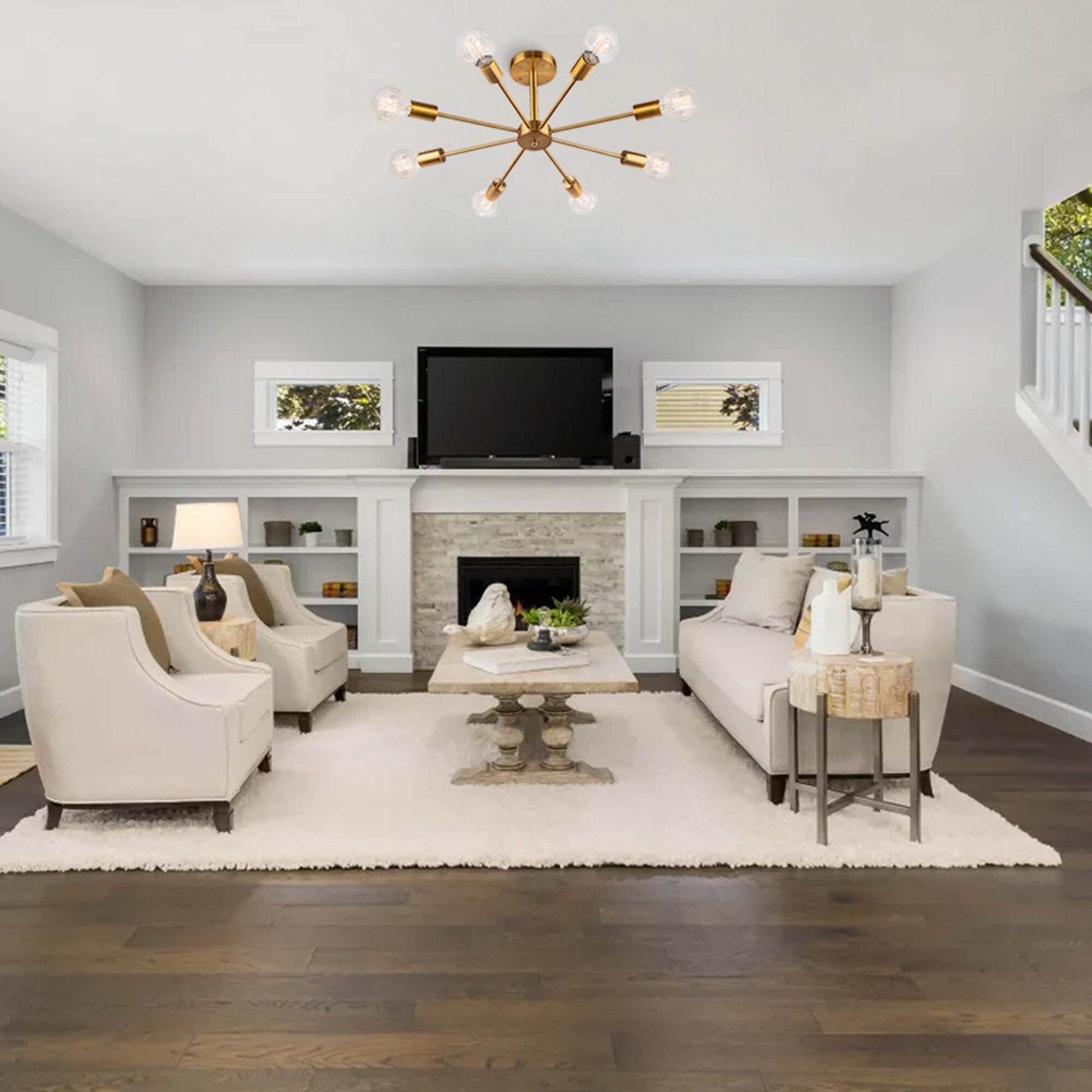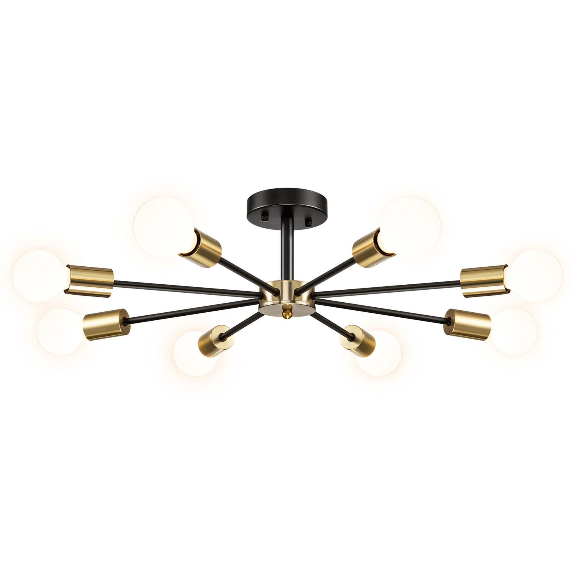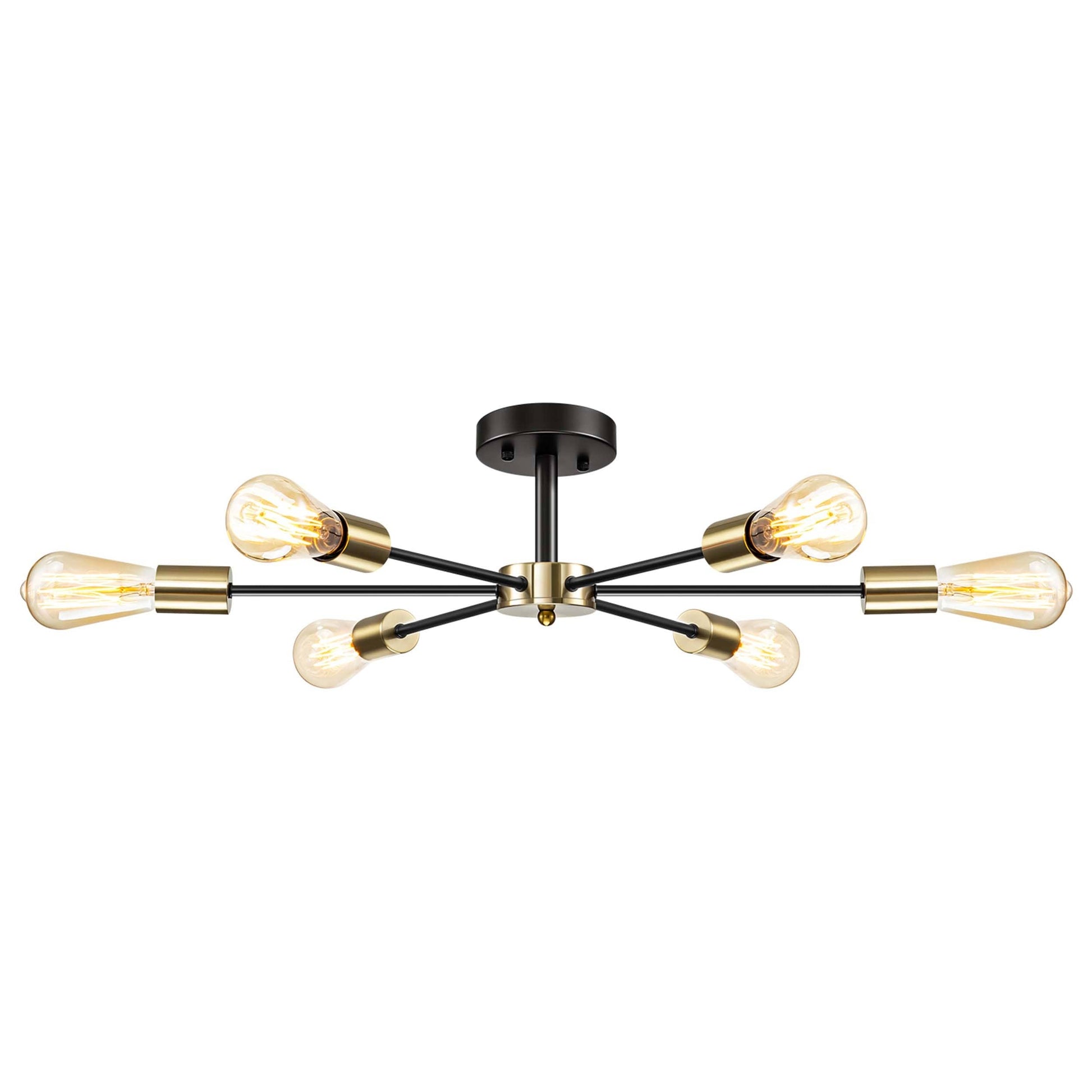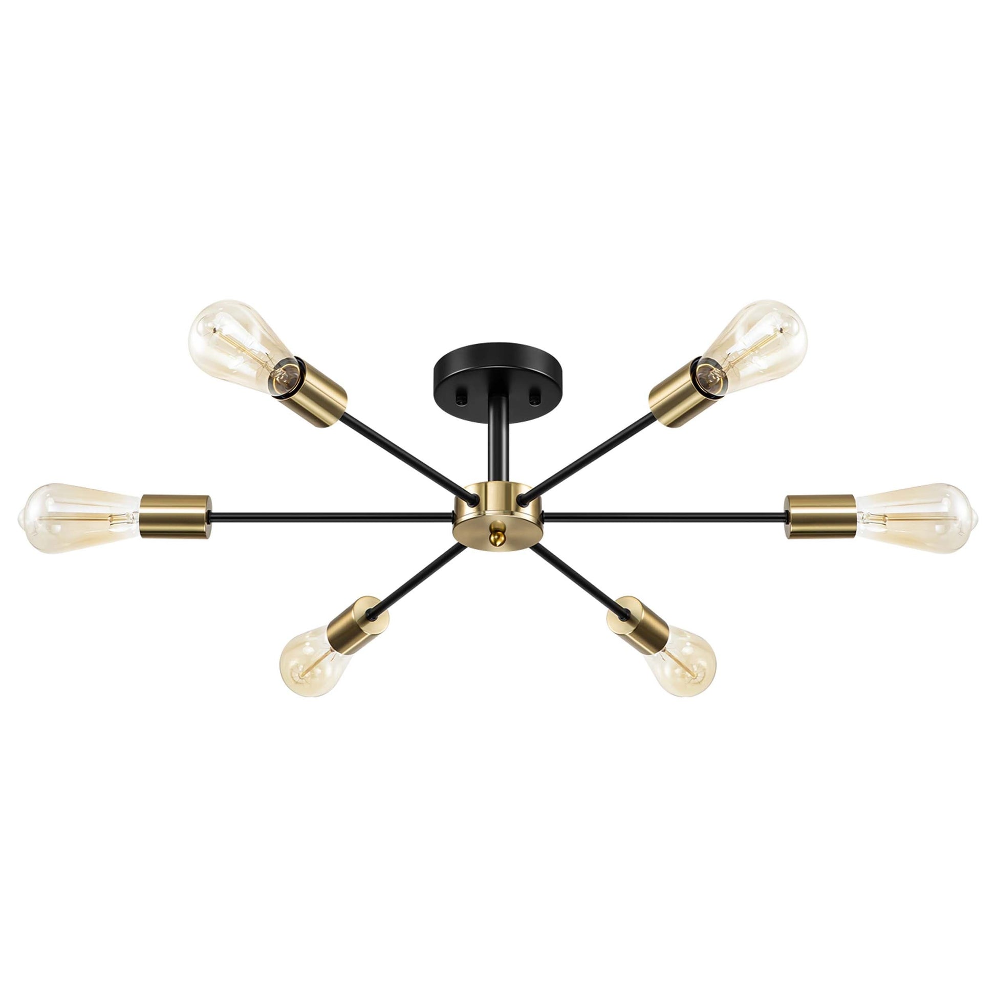 Black/ Gold Sputnik Semi Flush Mount Lamp Close to Ceiling Light Fixture for Living Room/ Kitchen/ Office/ Bedroom/ Foyer