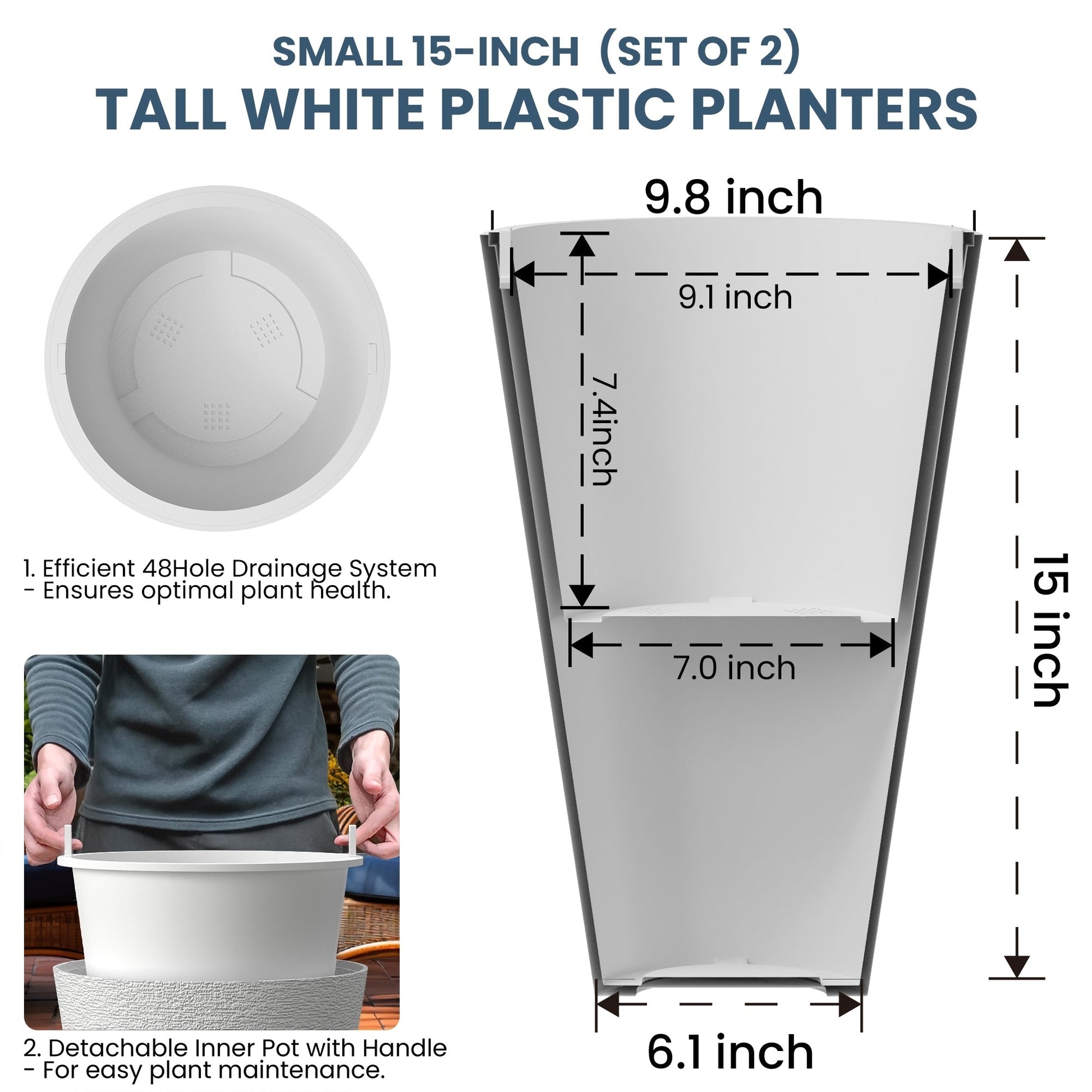 *Gardening Made Easy: Our collection, including the convenient outdoor Plant Pot set of 2, offers solutions for every gardener. Our plastic pots and planter options blend traditional aesthetics with modern functionality, while our planter boxes and tall planters provide structured elegance for your gardening projects