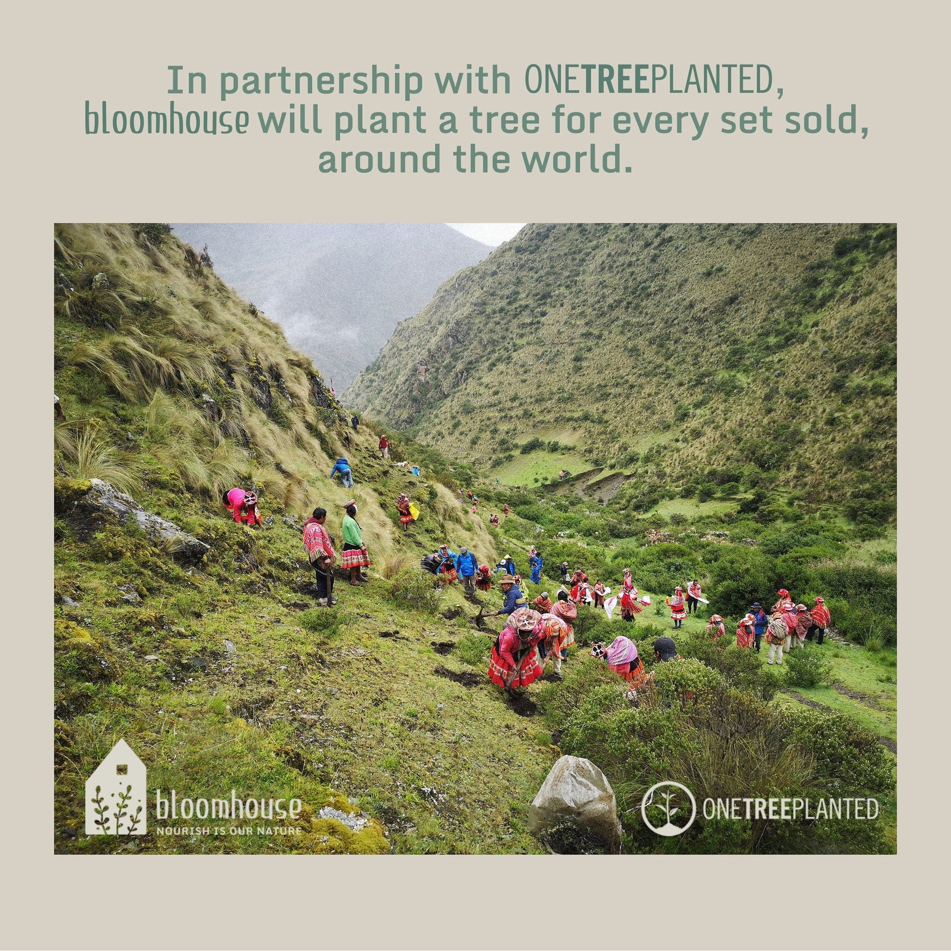 * ONE TREE PLANTED PER SET SOLD: In partnership with One Tree Planted, bloomhouse™ will plant a tree around the world for every set sold, keeping our planet healthy and thriving while encouraging acts of kindness and growth.