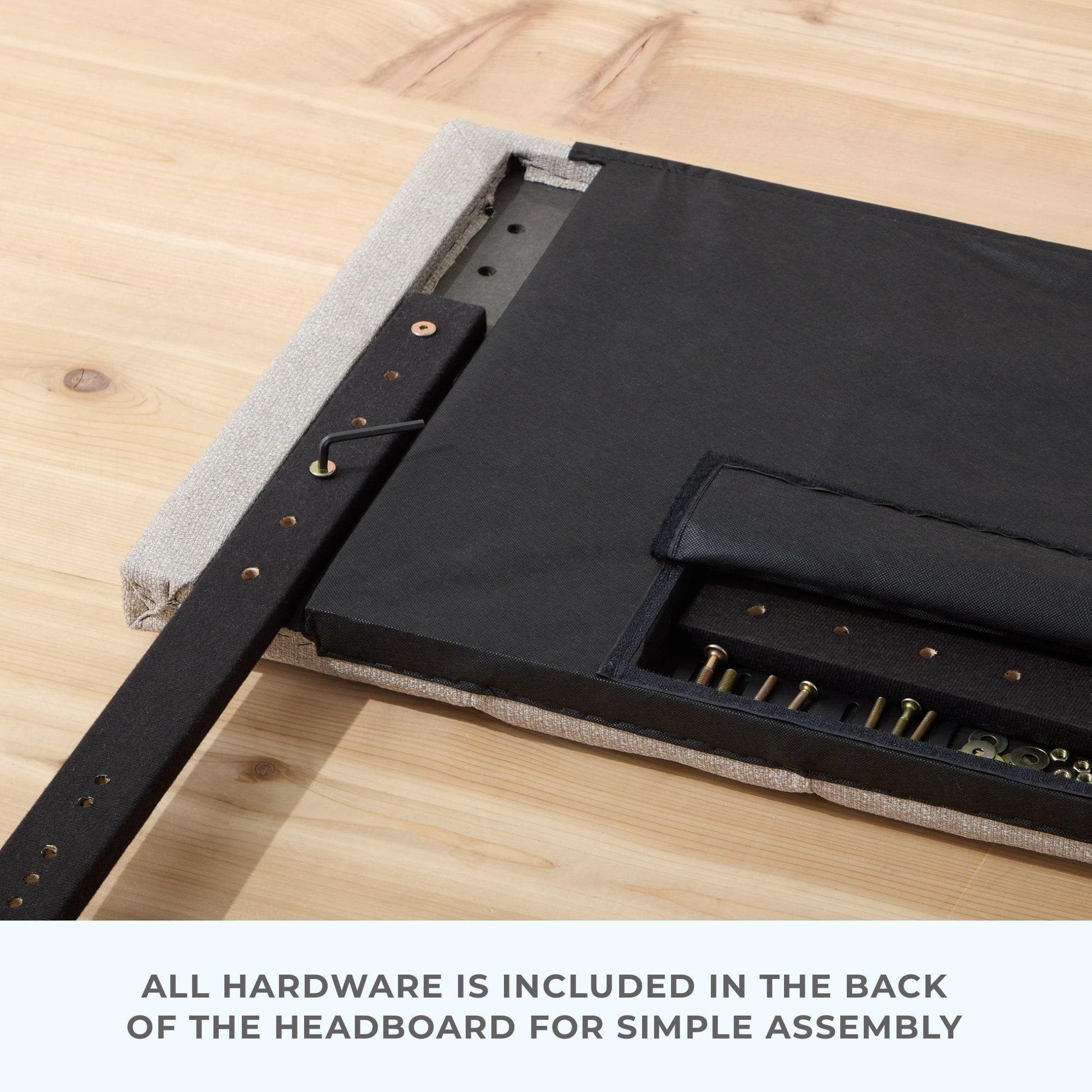 - Mid-rise height accommodates your bed frame; all hardware is provided and stored in the back of the headboard for assembly