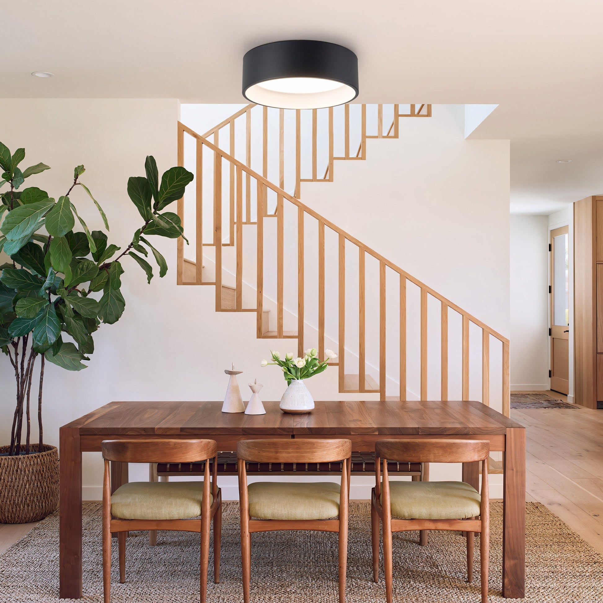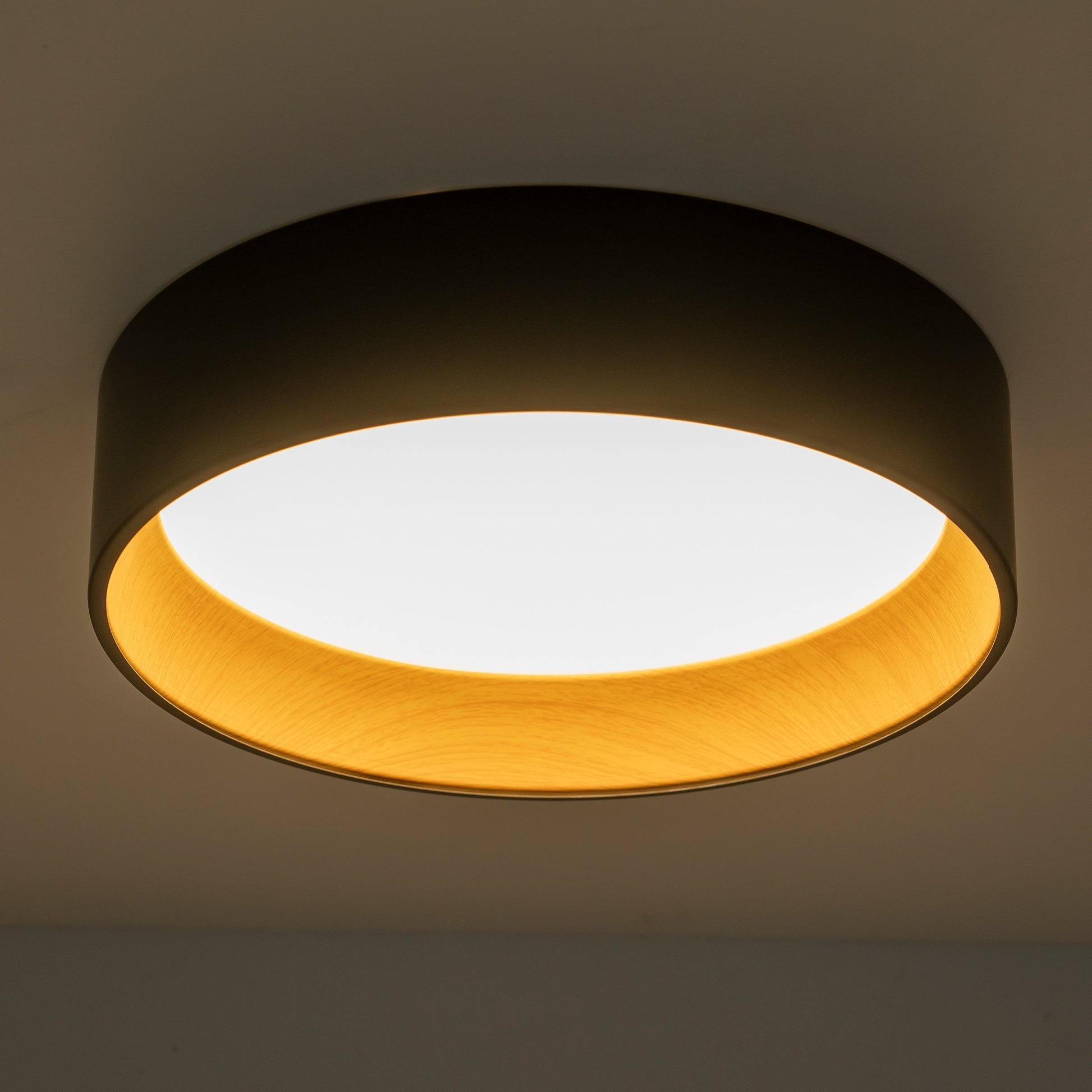 Elegant simplicity defines this round ceiling light, which features dimmable LEDs within a white acrylic diffuser ringed by a two-toned metal shade. Its chic but understated style makes this a versatile contemporary ceiling light fixture for living rooms, kitchens, and bedrooms. A damp rating also makes this a safe choice for a bathroom ceiling light.