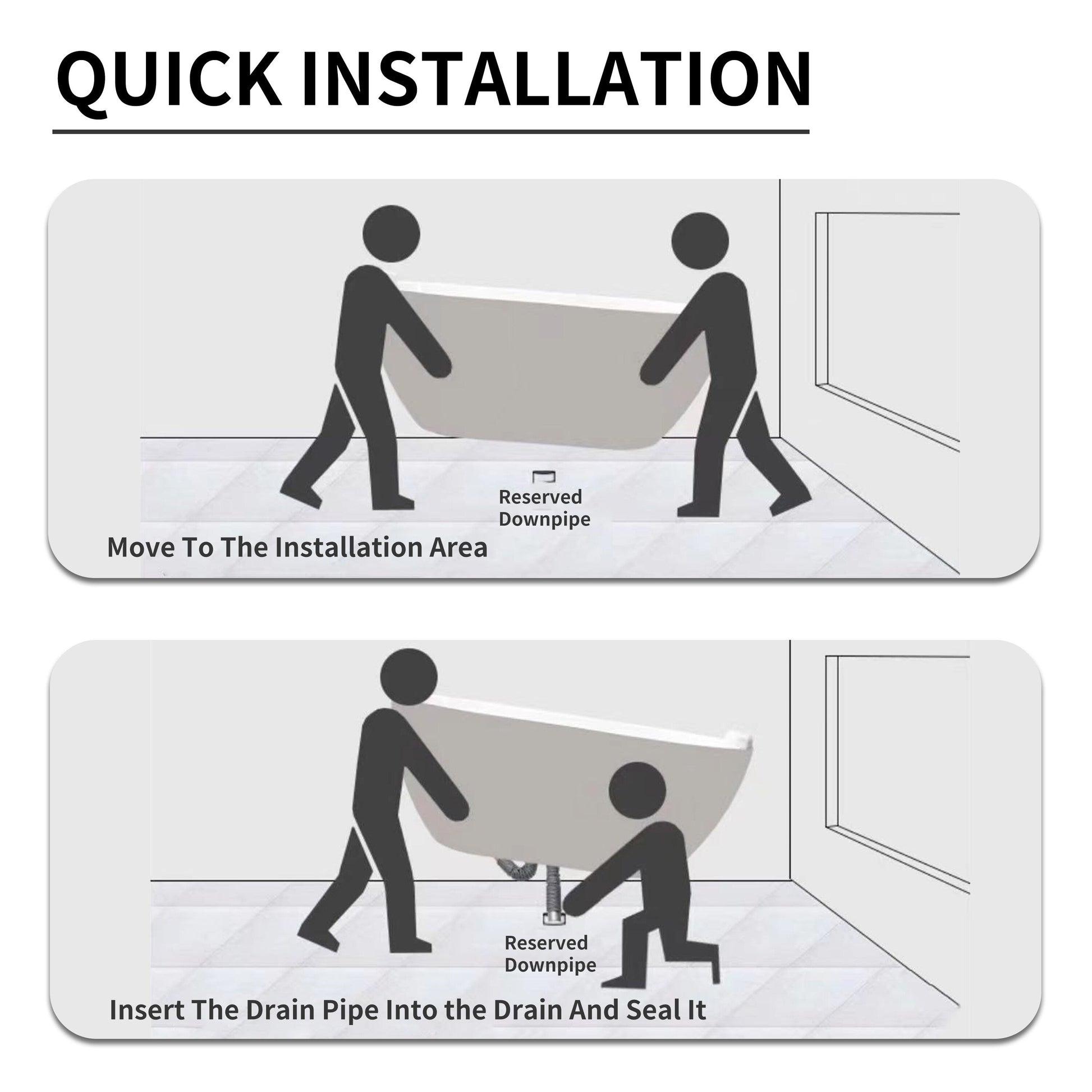 •【Easy to Installation & Save Space】: All mounting hardware is included in the bathtub package to save you time. It also comes with a user manual showing the steps of assembling and mounting the bathtub to the floor.Single side against the wall design can more fitted to the wall saves more space, which is suitable for the placement of small bathroom spaces