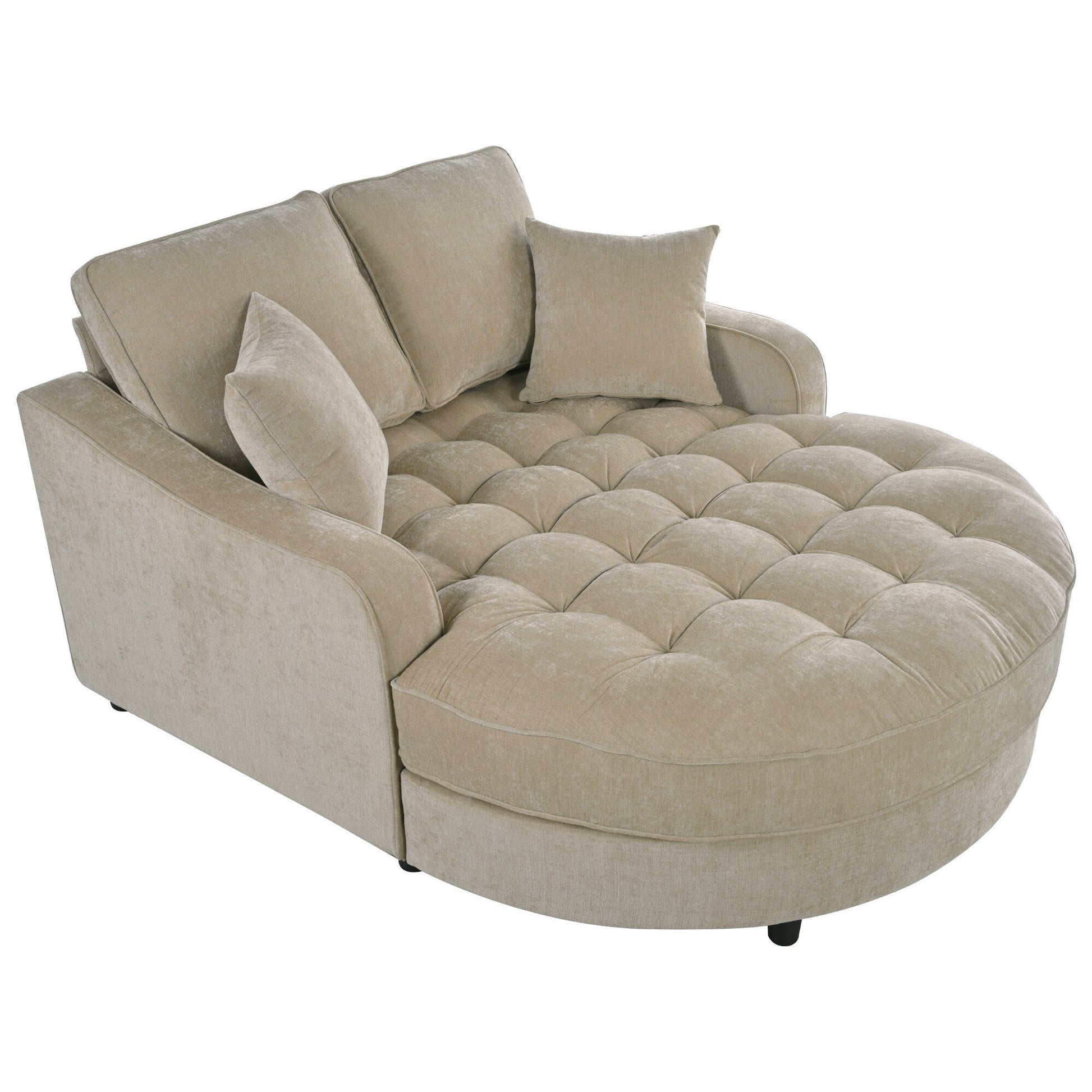 Chenille Chaise Lounge Sofa Bed, Upholstered Sofa Couch with Tufted Backrest and 2 Detachable Pillows for Living Room