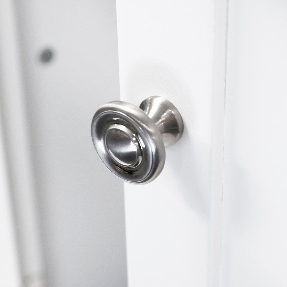 Add stylish and functional storage to any room with the Copper Grove Radnevo Space-saving Cabinet. This elegant cabinet boasts a sturdy metal drawer guide and a raised panel door with painted vein lining. The brushed nickel drawer and door knob add a touch of sophistication to this versatile piece.