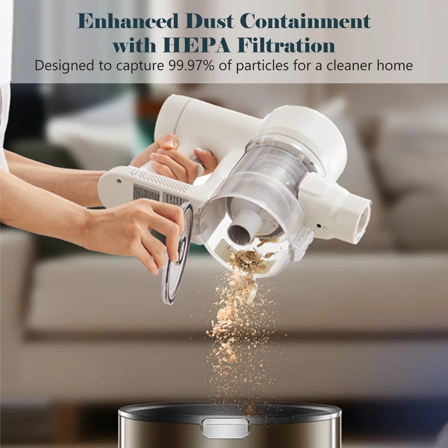 - [HEPA Filtration]: Features a sealed cyclone system with a HEPA filter to trap fine dust and allergens, preventing air pollution. One-touch dust bin emptying ensures quick disposal.
