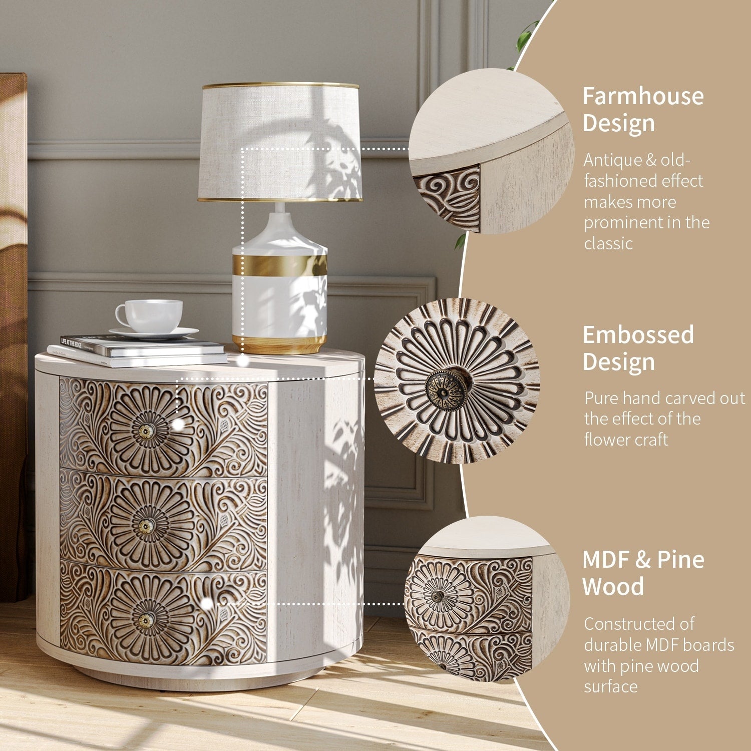 COSIEST Vintage Brown Pattern Solid Wood Nightstand with Drawers