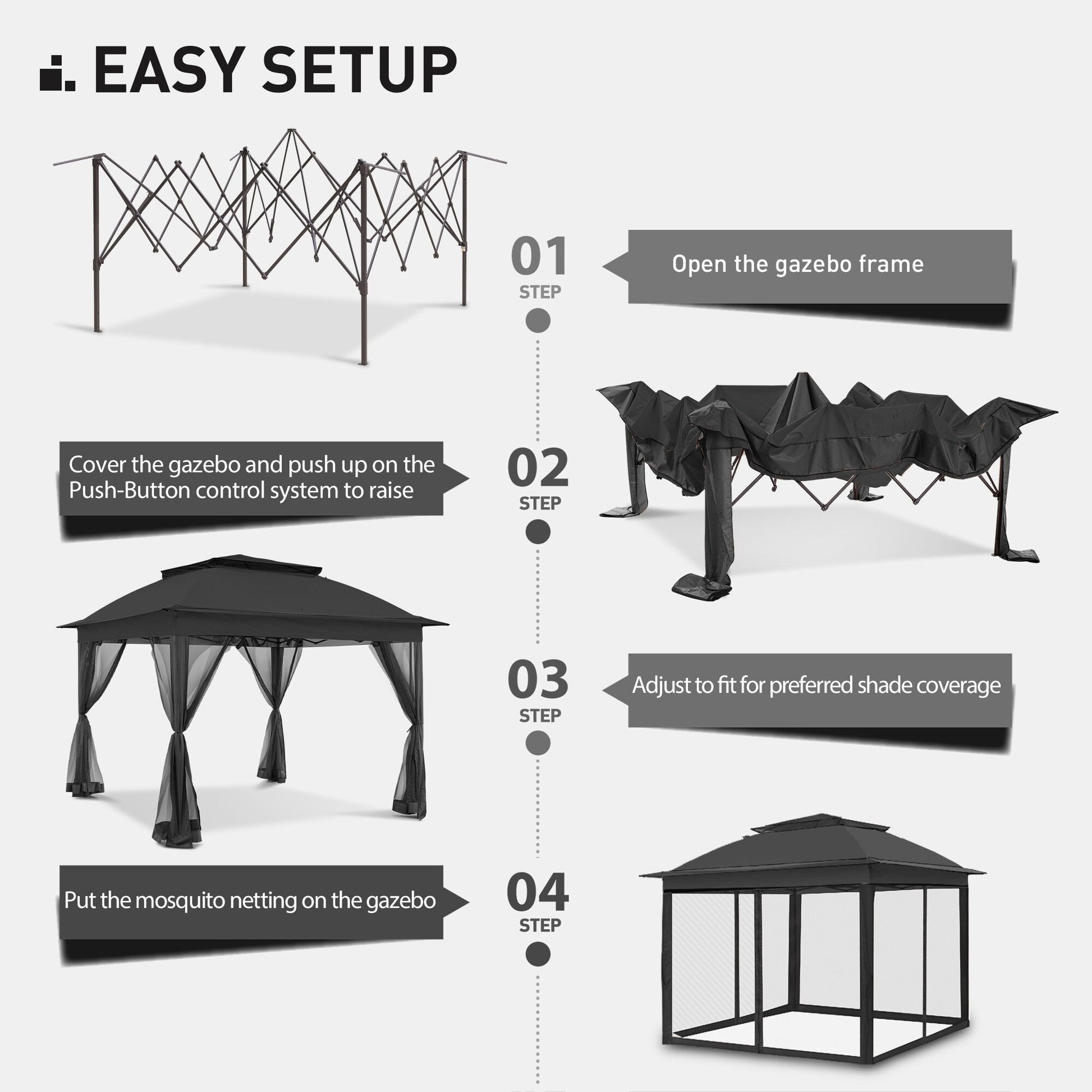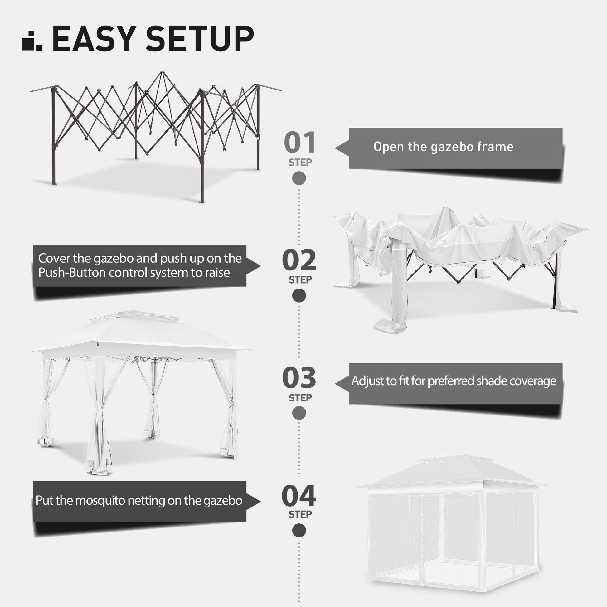 Cozywor 11 ft. x 11 ft. Pop-Up Steel Gazebo with Mosquito Netting