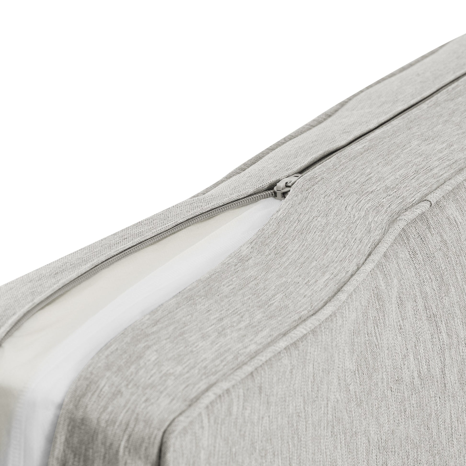 - Cushion covers in gray, navy, deep sangria, neutral sand, or white with contrast piping