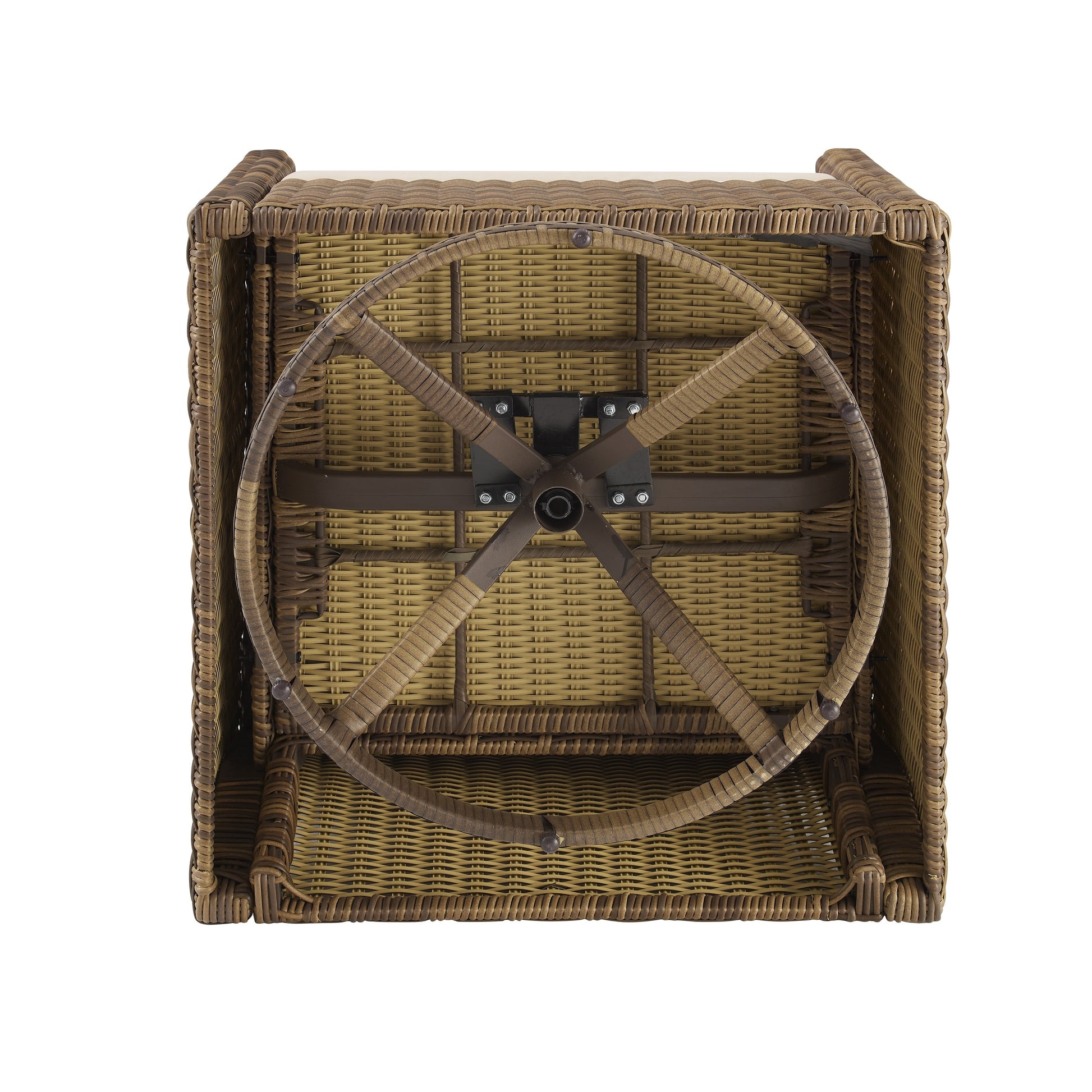 - All-weather half-round resin wicker in weathered brown