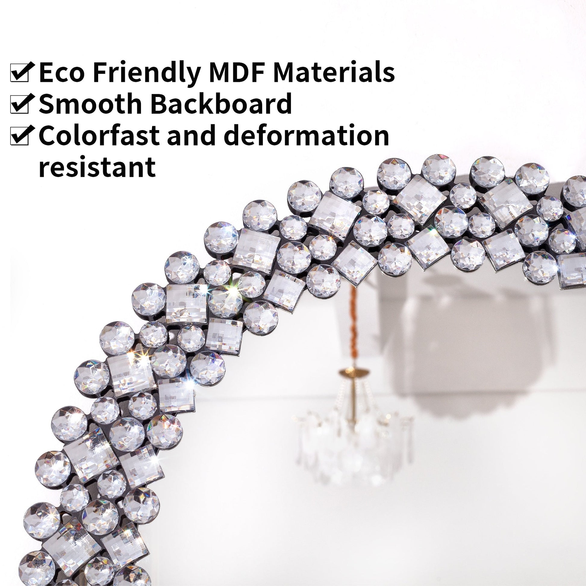 - 【Sophisticated Design】The round wall mirror is adorned with several layers of large, shiny, and luxurious crystals on the outer edge, creating a sparkling effect that captures attention and serves as a focal point in home decor.