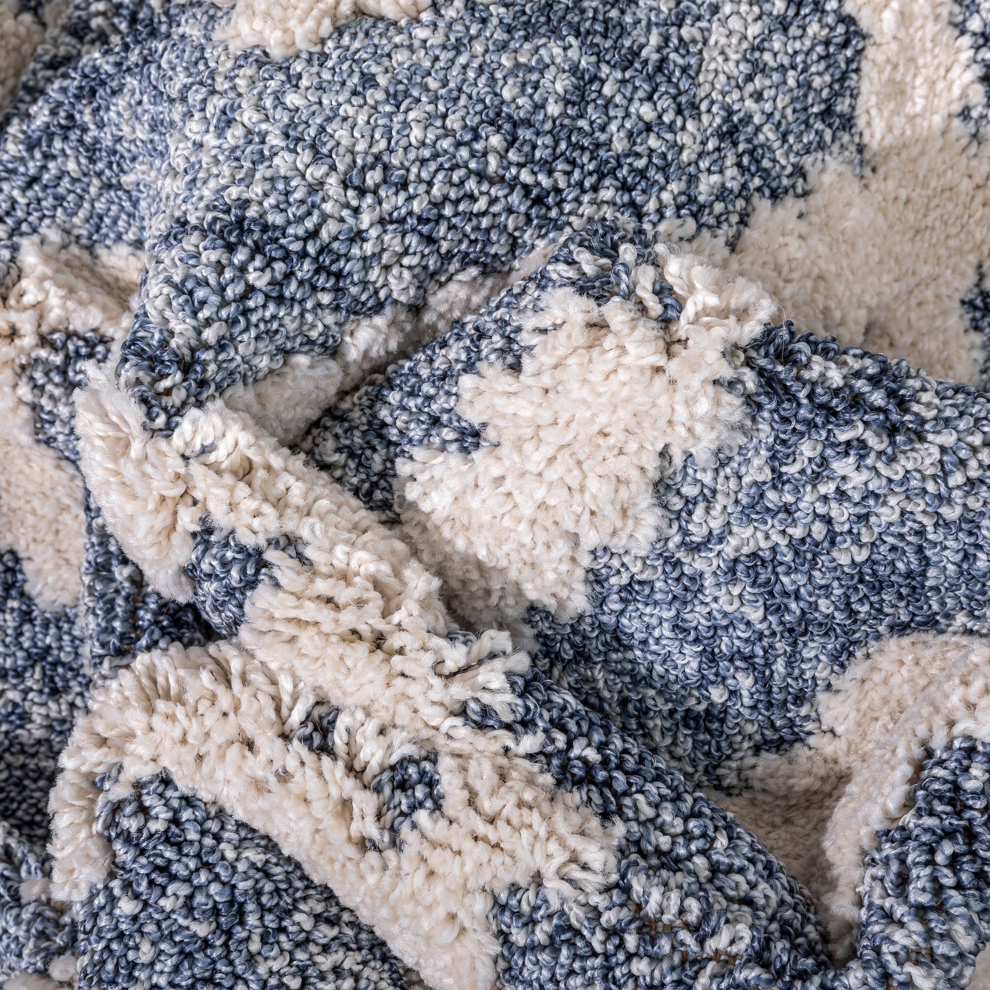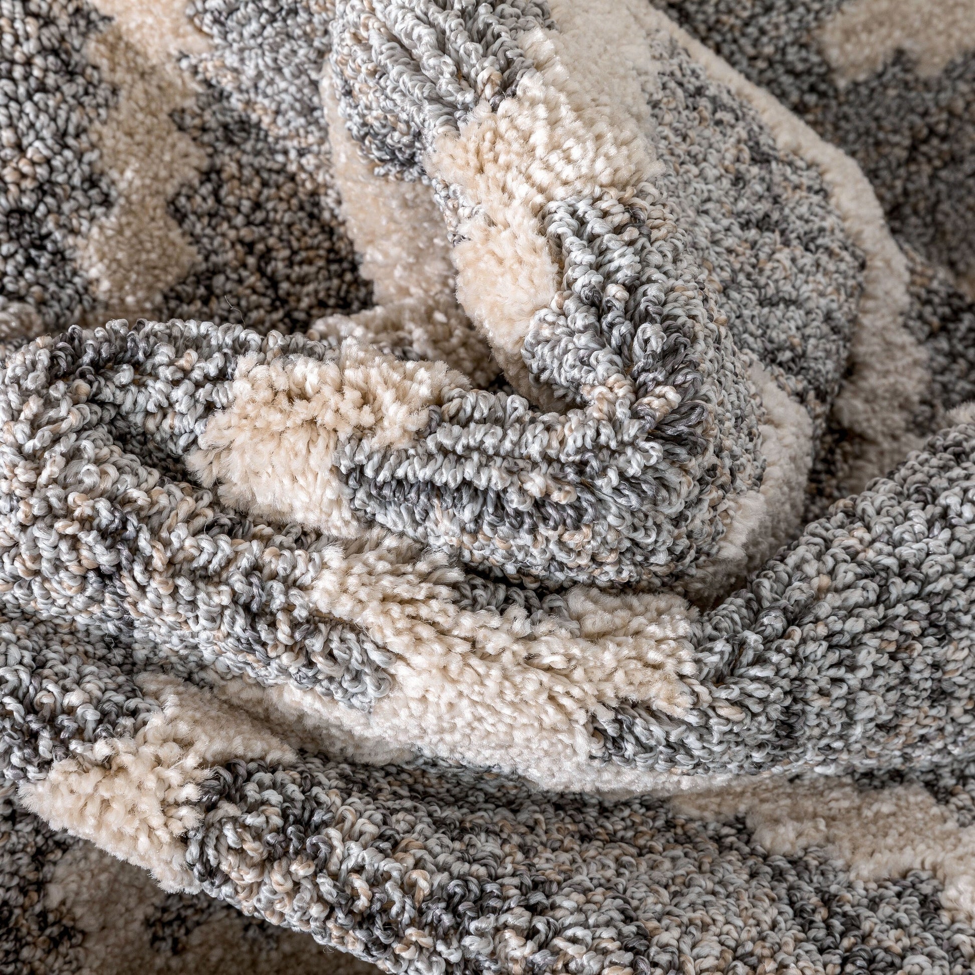 - High-low cut-and-loop pile; plush underfoot, with a texture your toes will love.
