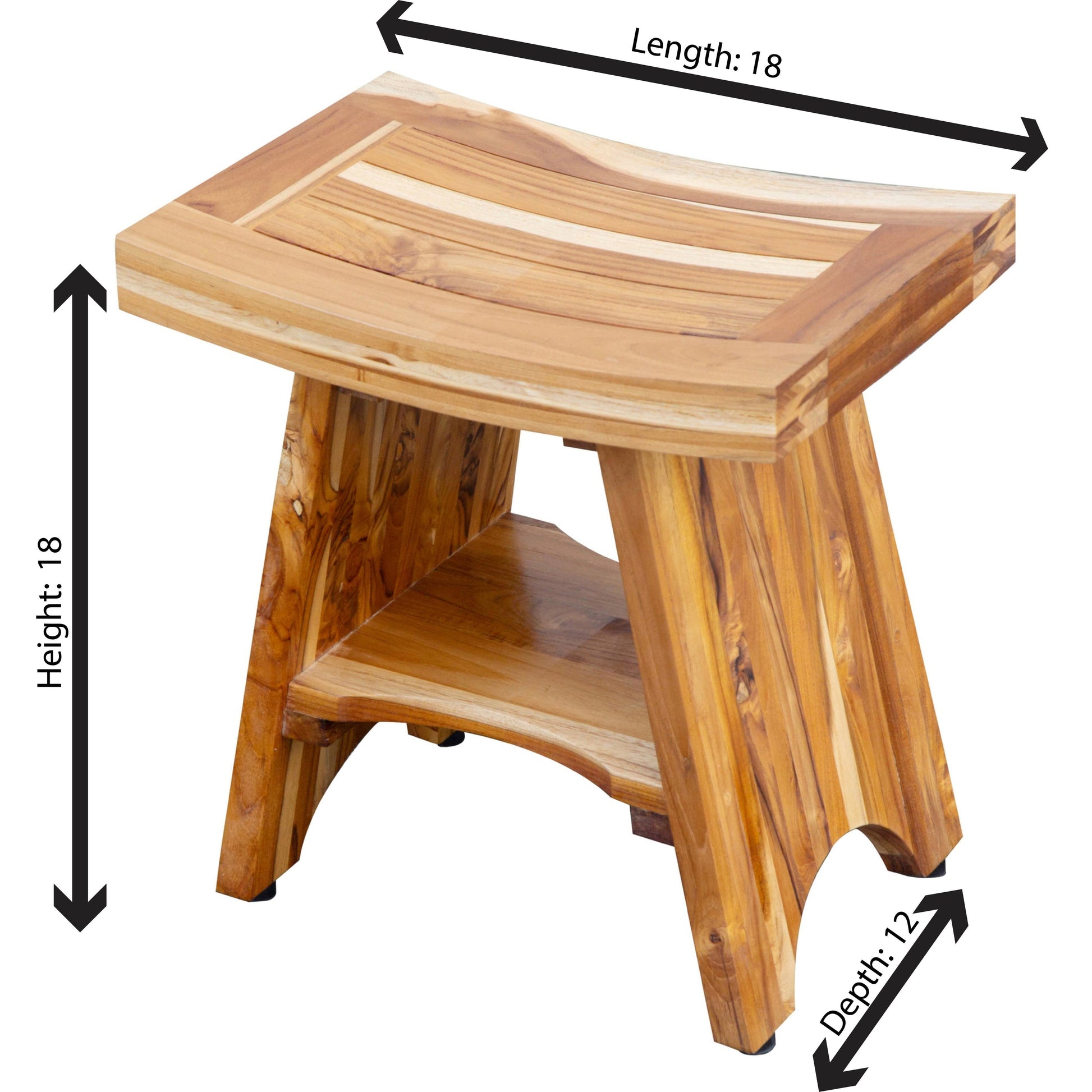 EcoDecors, Serenity, Teak Shower Bench, Teak Shower Stool, Teak Corner Shower Bench, 18 Inch, With Shelf