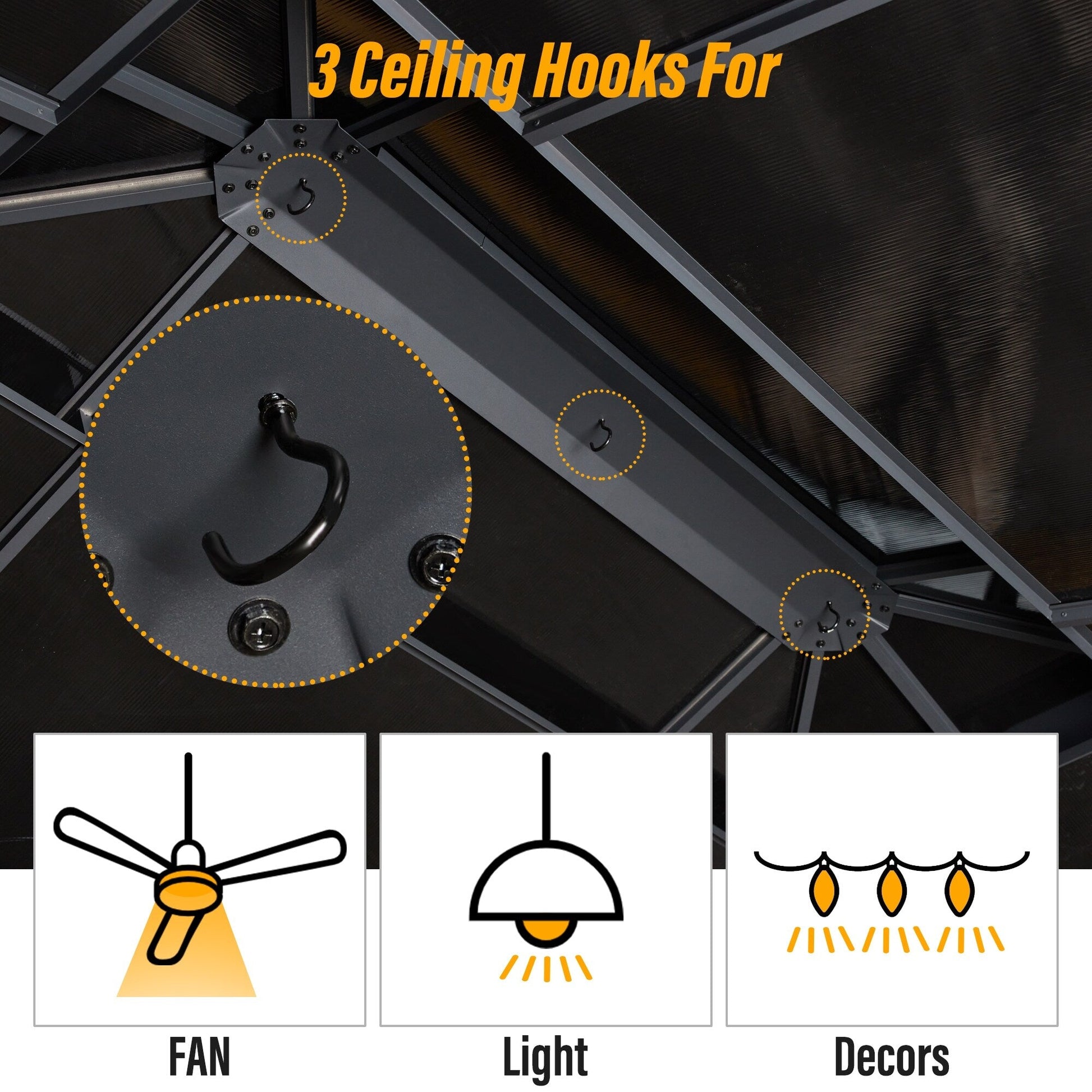 This high-end gazebo effortlessly adapts to various scenarios—from patio BBQ parties and lawn picnics to deck afternoon teas, courtyard grilling, backyard gatherings, or poolside relaxation. Its elegant design provides ideal shade protection, while the open structure not only perfectly accommodates barbecue setups but also fits a 7–9 person dining table and chair set, enhancing your outdoor experience from morning coffee to evening feasts with ultimate comfort and convenience.