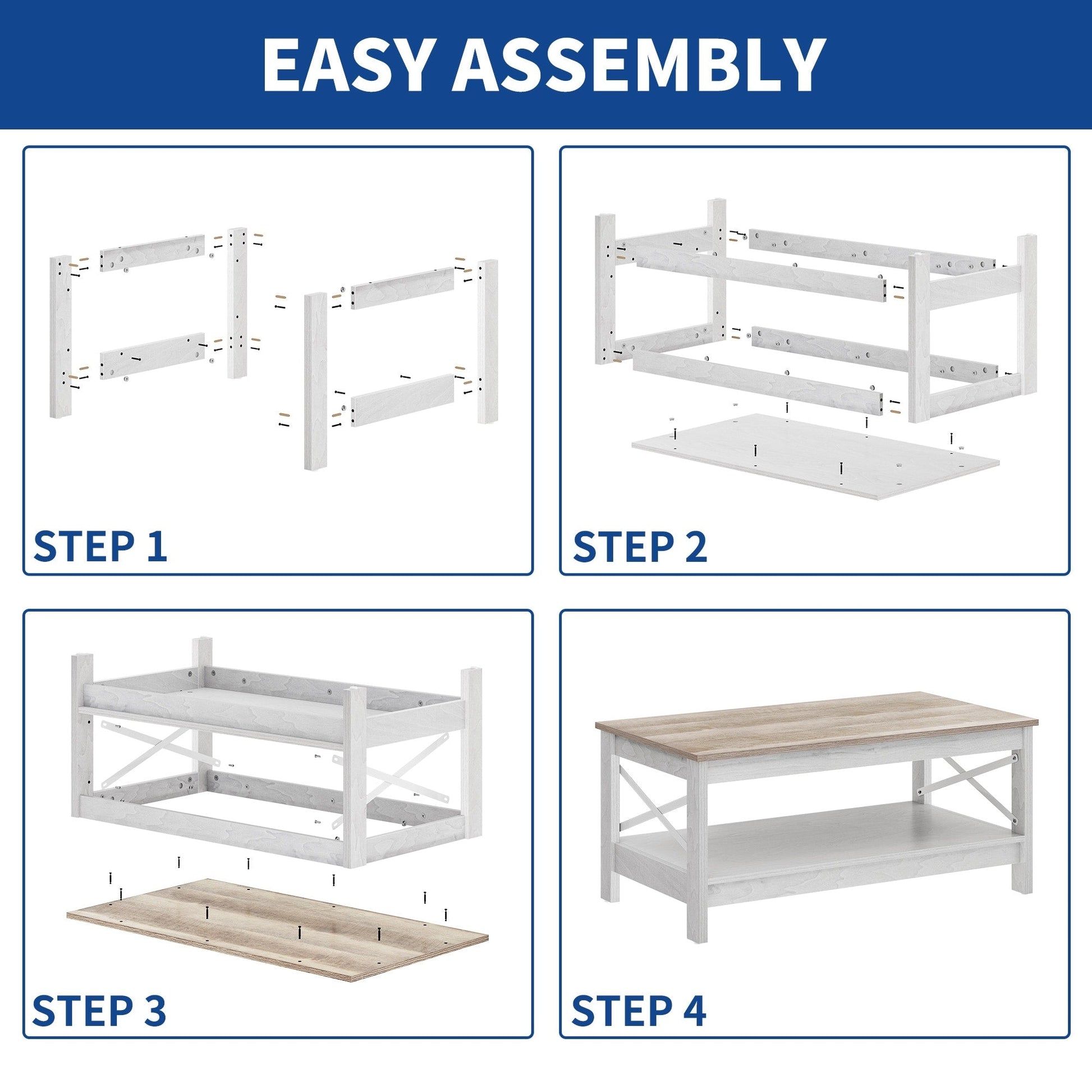 - 4. Easy to Assemble: Small coffee table is easy to assemble and the package contains all the tools you need, accessory instructions and an illustrated user manual. By carefully and patiently following the instructions provided on the page, you can quickly install the coffee tables. If there are any questions, we will help you solve them with excellent customer service.