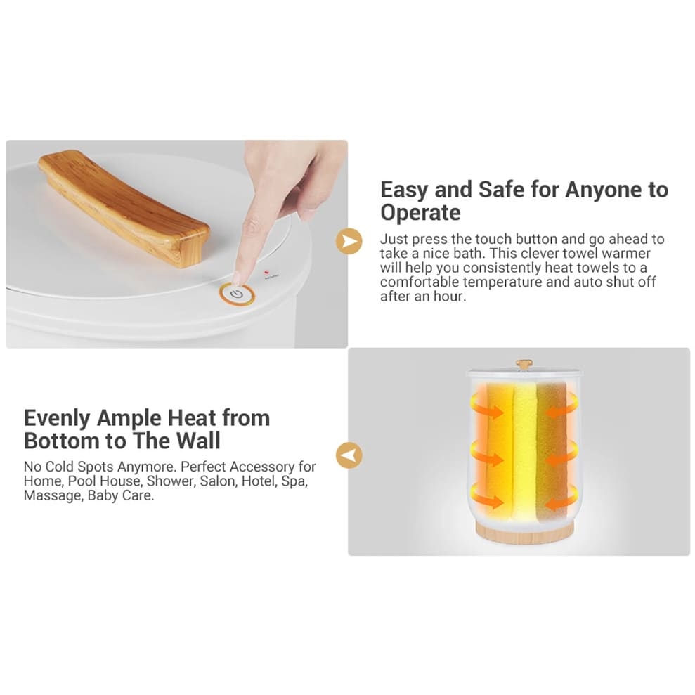 Upgraded 360° Rapid Heating System - Using the unique heating method, easily let the heat conduct to the entire inner of the towel warmer, achieving even heating from all angles. Rapid heat up in just 1 minute and reach a high temperature in just 6 minutes. Allows you to enjoy the warm soft towel and blanket after a quick shower, leaving no cold spots.