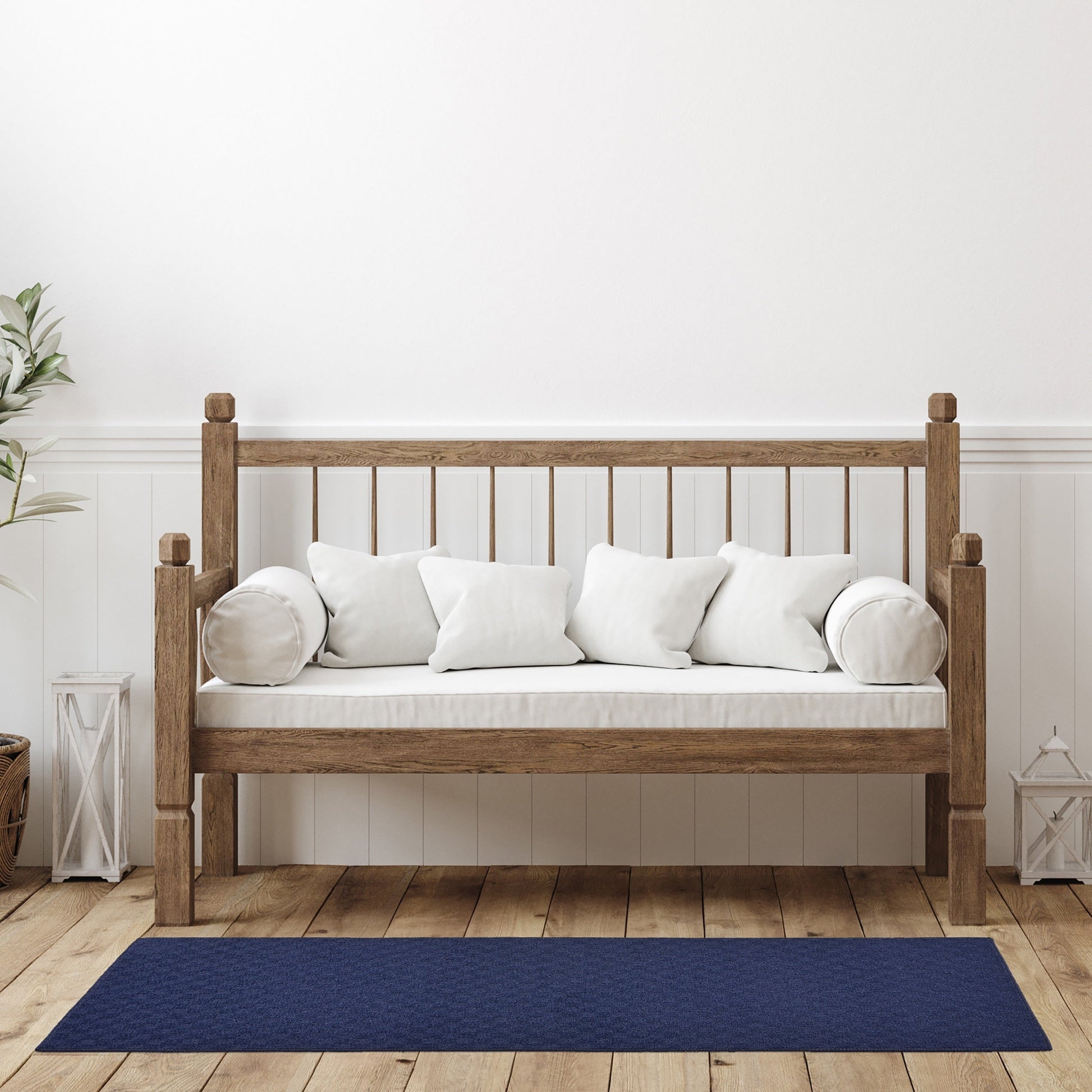Looking for a stylish and practical addition to your living space? Look no further than the Medallion Area Rug by Garland. Crafted from a soft polypropylene pile, this rug is a delight to step on. Its non-slip latex backing provides extra stability for safety and comfort. The cut-loop construction and soil and stain-resistant quality make it ideal for high-traffic areas like the living room or dining room. The solid color with a square pattern gives it a classic feel that's perfect for any home decor style. Please remember to vacuum and spot clean only to keep it looking its best, and don't worry about the fold marks from shipping, they'll naturally disappear!