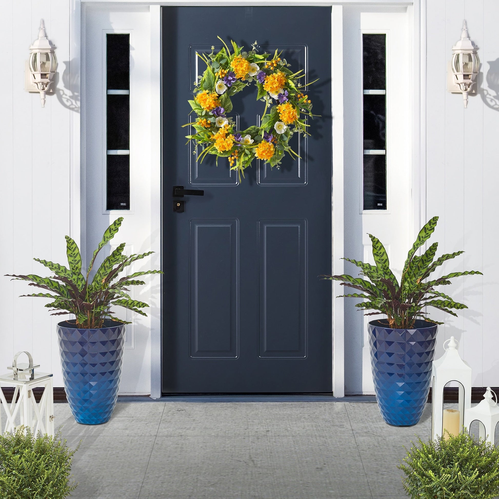 Glitzhome 19.75 H Eco-Friendly Oversized Faux Ceramic Diamond Textured Tall Planter Porch Flowerpot (Set of 2)