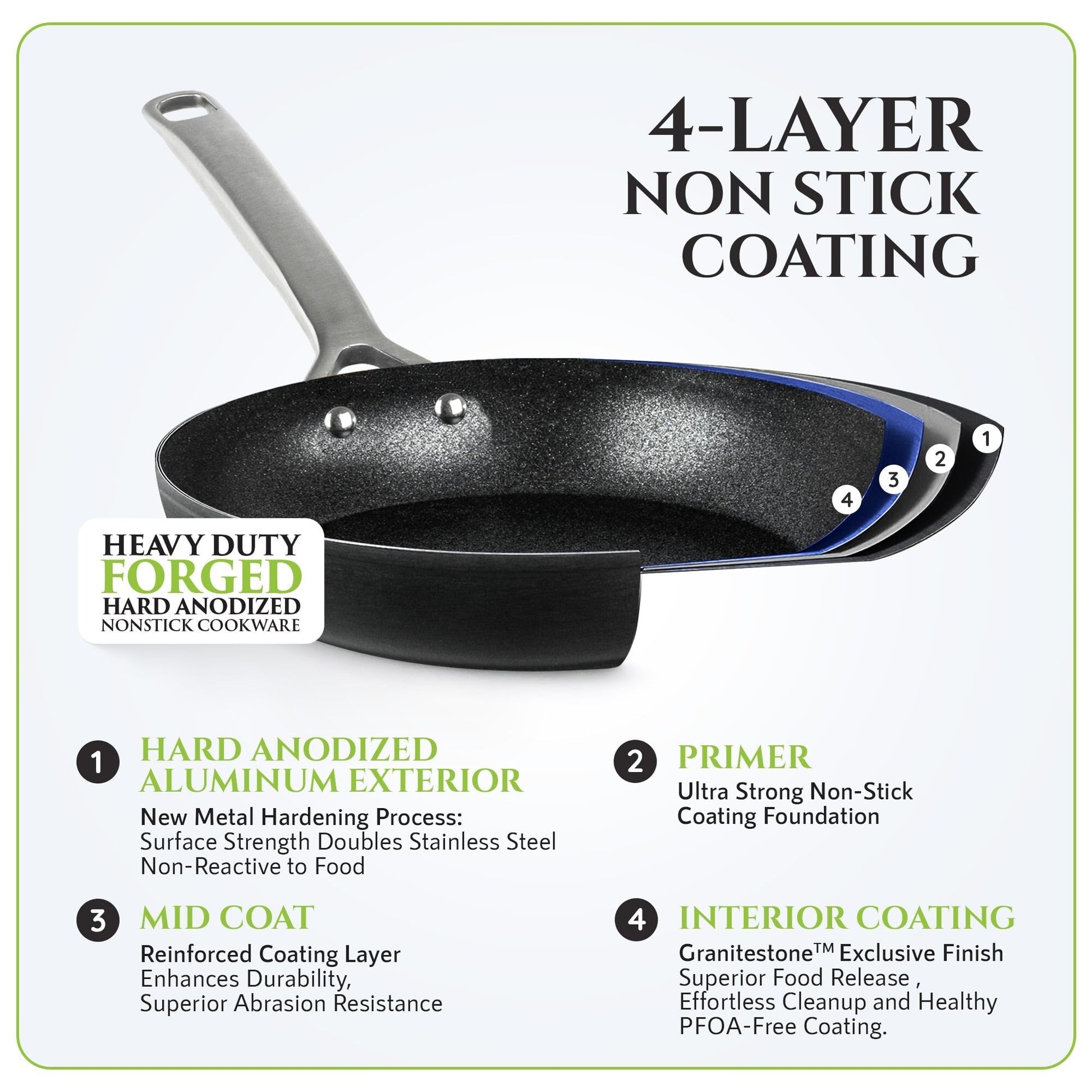 - GRANITESTONE ARMOR MAX: Each piece of Granitestone Armor Max cookware is built to last a lifetime while simultaneously providing the best nonstick experience ever produced by Granitestone. The heavy duty, forged, hard anodized exterior paired with a 4-layer nonstick interior ensures you have top of the market nonstick cookware for years to come.