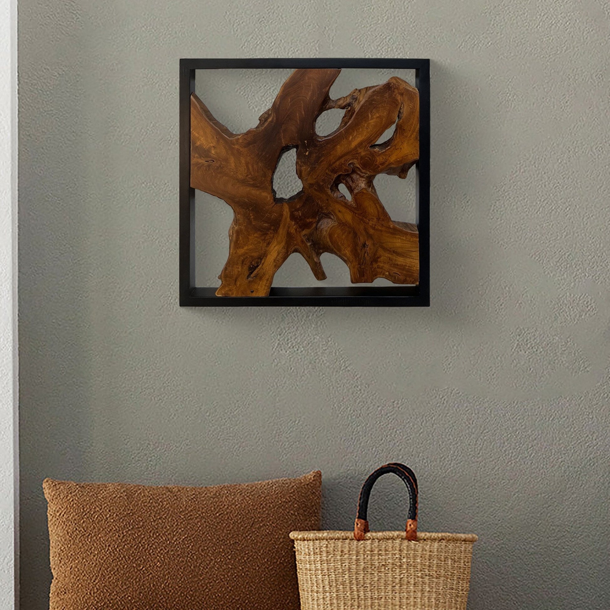 - ARTISTIC : Crafted from teak wood, these abstract panels add a natural touch to any room. The wall decor features live edge wood sculptures in their natural finishes, framed in black for a striking contrast. Enhance your living space with our Farmhouse Wall Decor Set, evoking cozy charm and a wholesome atmosphere with its rustic finishes.