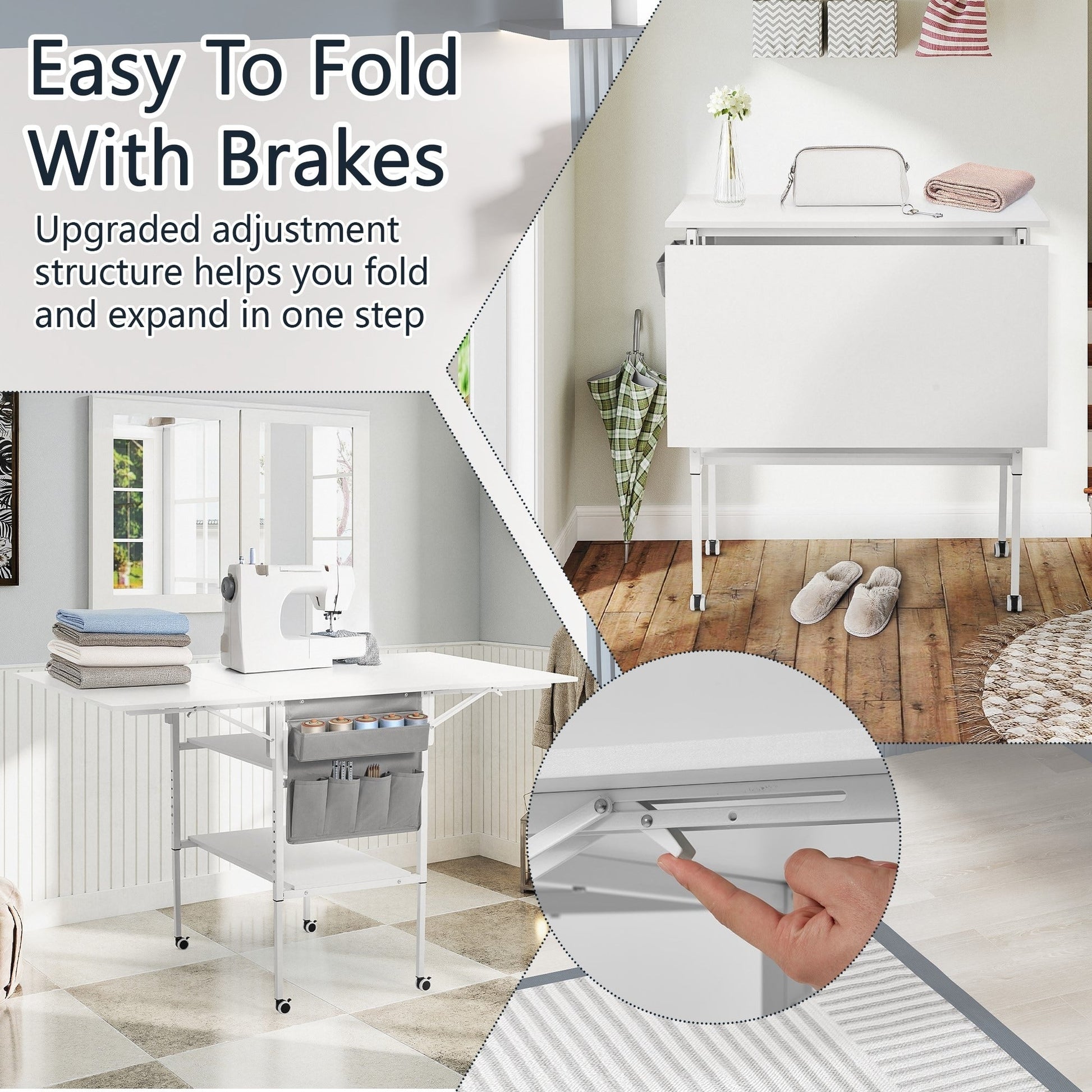 Height Adjustable Craft Table with Storage Shelves, Mobile Folding Cutting Table for Home Office Sewing Room Craft Room