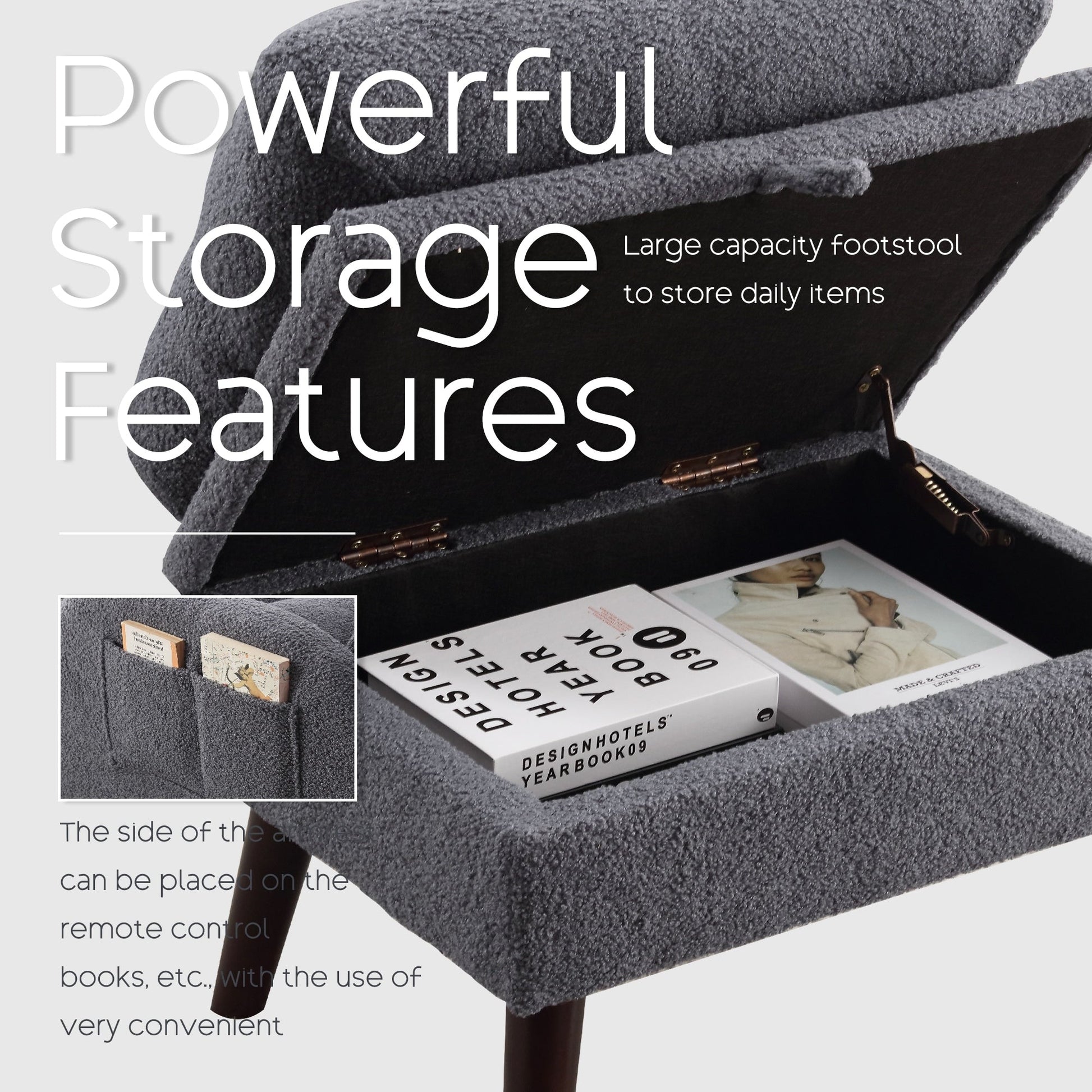 HOMYKA Accent Lounge Chair with Adjustable Backrest Storage Ottoman