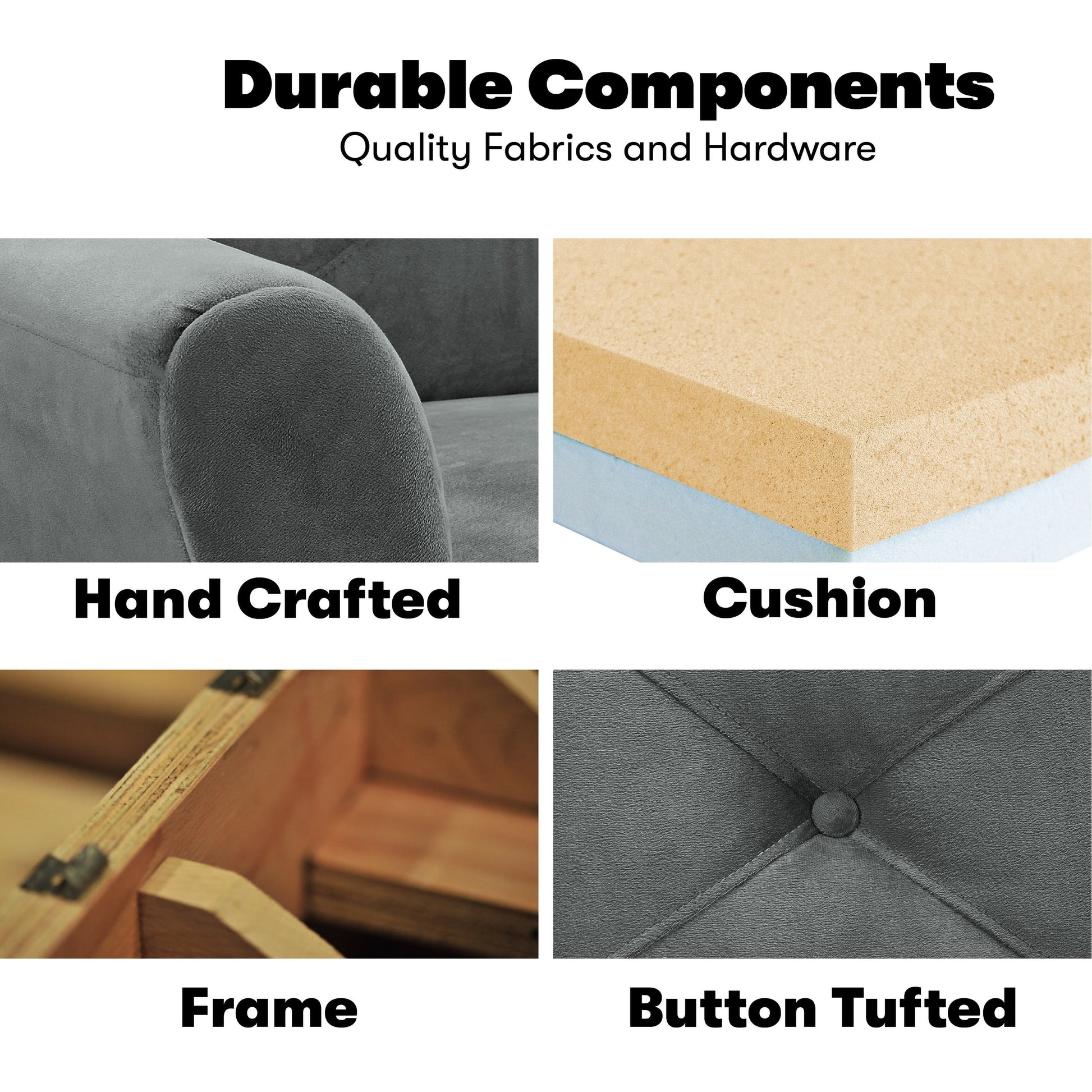 Experience the perfect blend of style, comfort, and convenience with the iLounge Harvard Microfiber Sofa. This three-seat sofa is crafted with high-density foam cushions and curved arms that snuggle your body for a cozy feel. The sofa's solid eucalyptus wood frame ensures durability and long-lasting enjoyment, while its plush poly microfiber upholstery provides lasting softness. The elegant tufted back cushions add an accented support to this masterpiece. Minimal assembly is required, and it can hold up to 450 lbs.