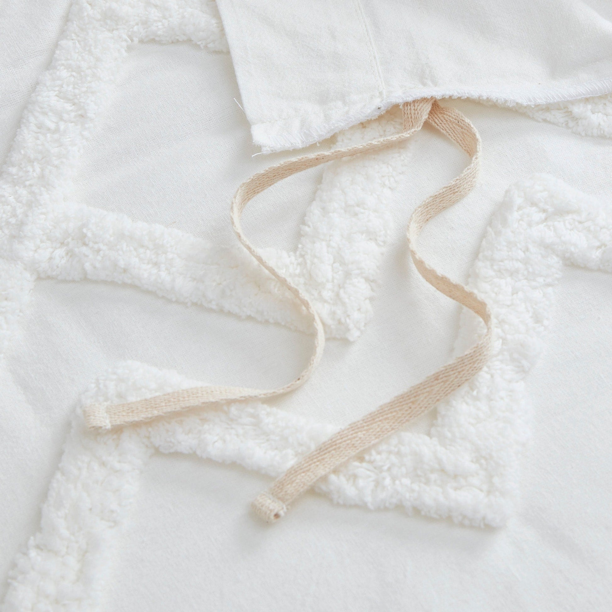 - Farmhouse cotton duvet cover set with tufted white chevron chenille