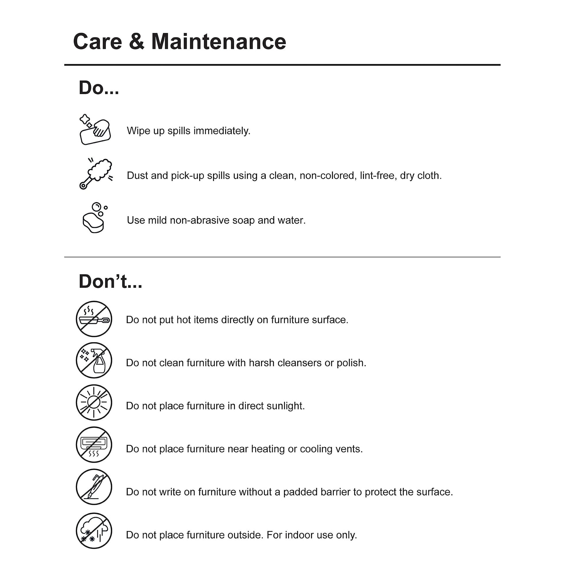 - Rounded edges with a 3mm radius and decorative leg hardware offer refined finishing touches