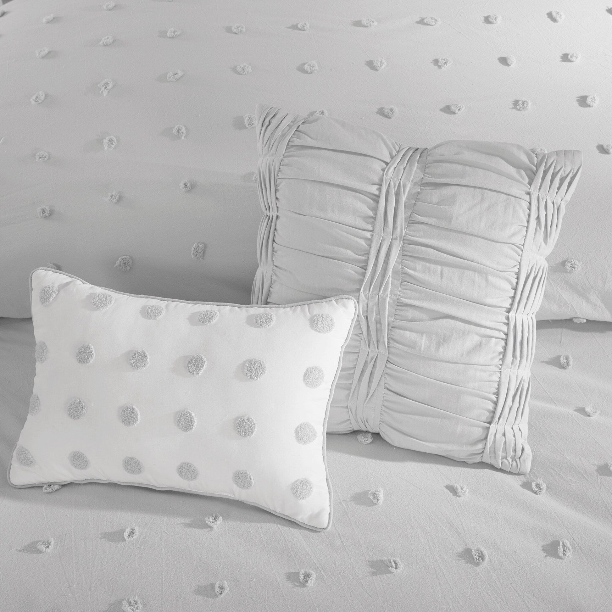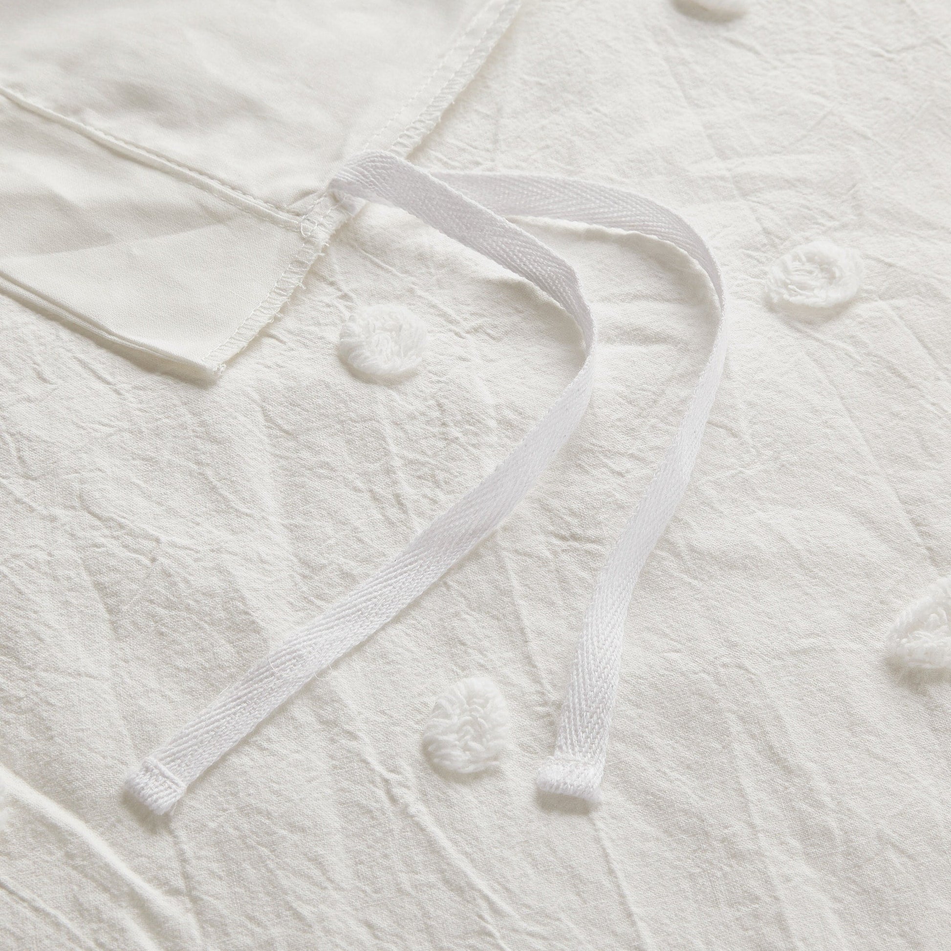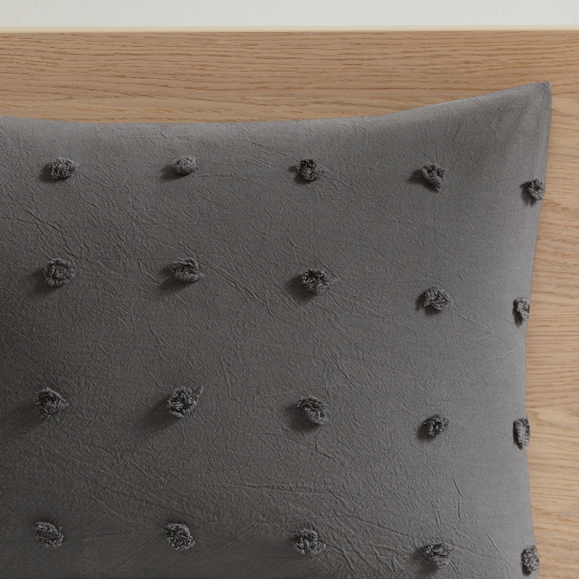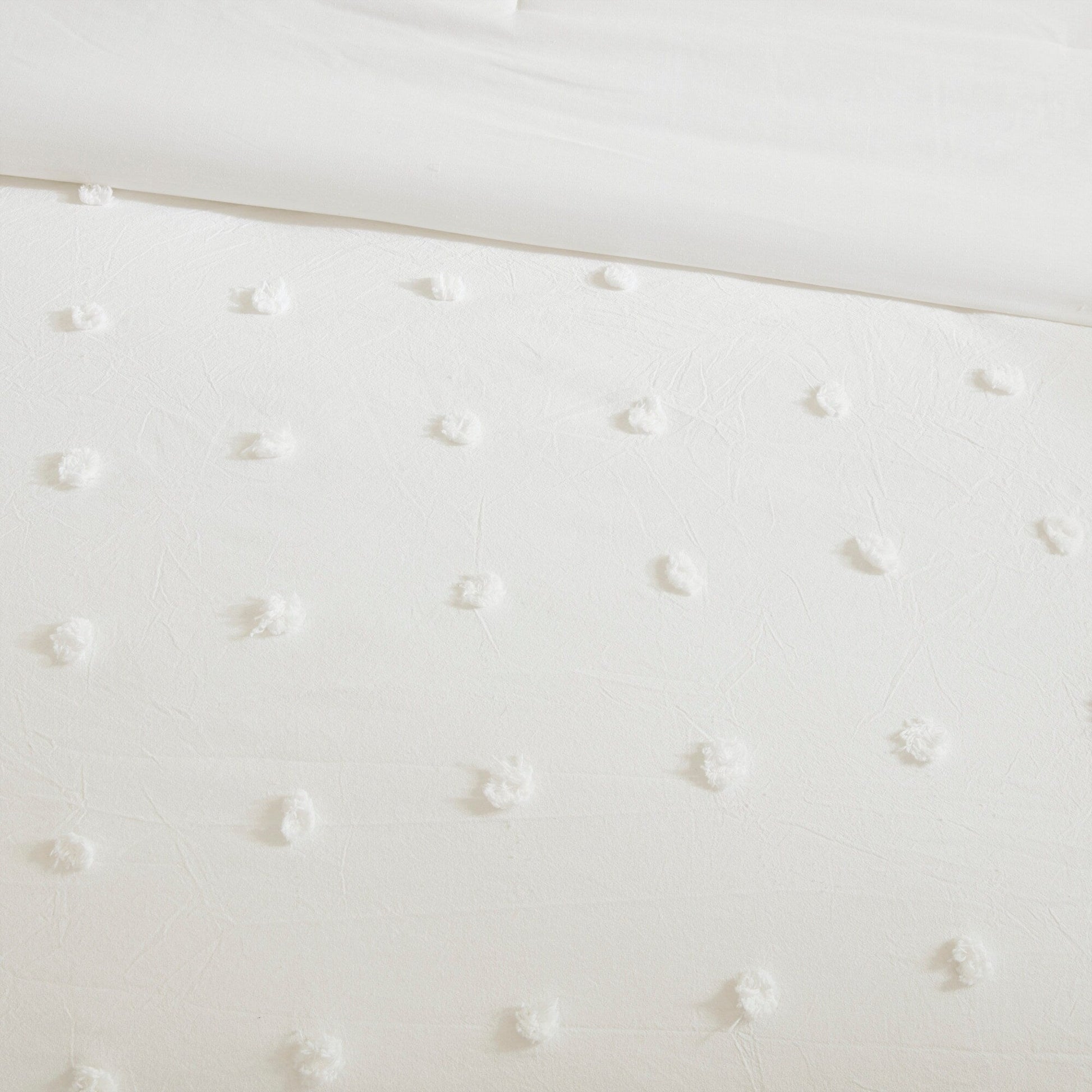 The Intelligent Design Maize Cotton Jacquard Duvet Cover Set features small tufted chenille dots that create a fresh shabby chic look. This duvet cover set brings a soft and charming update to your bedroom.