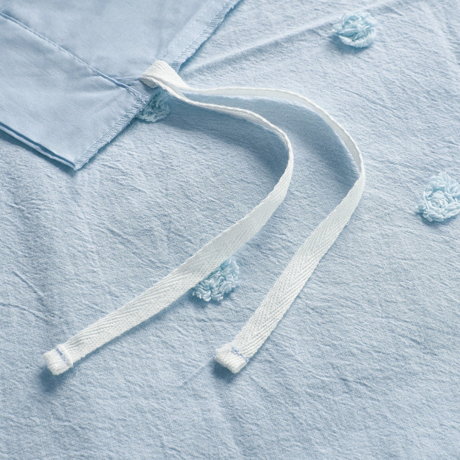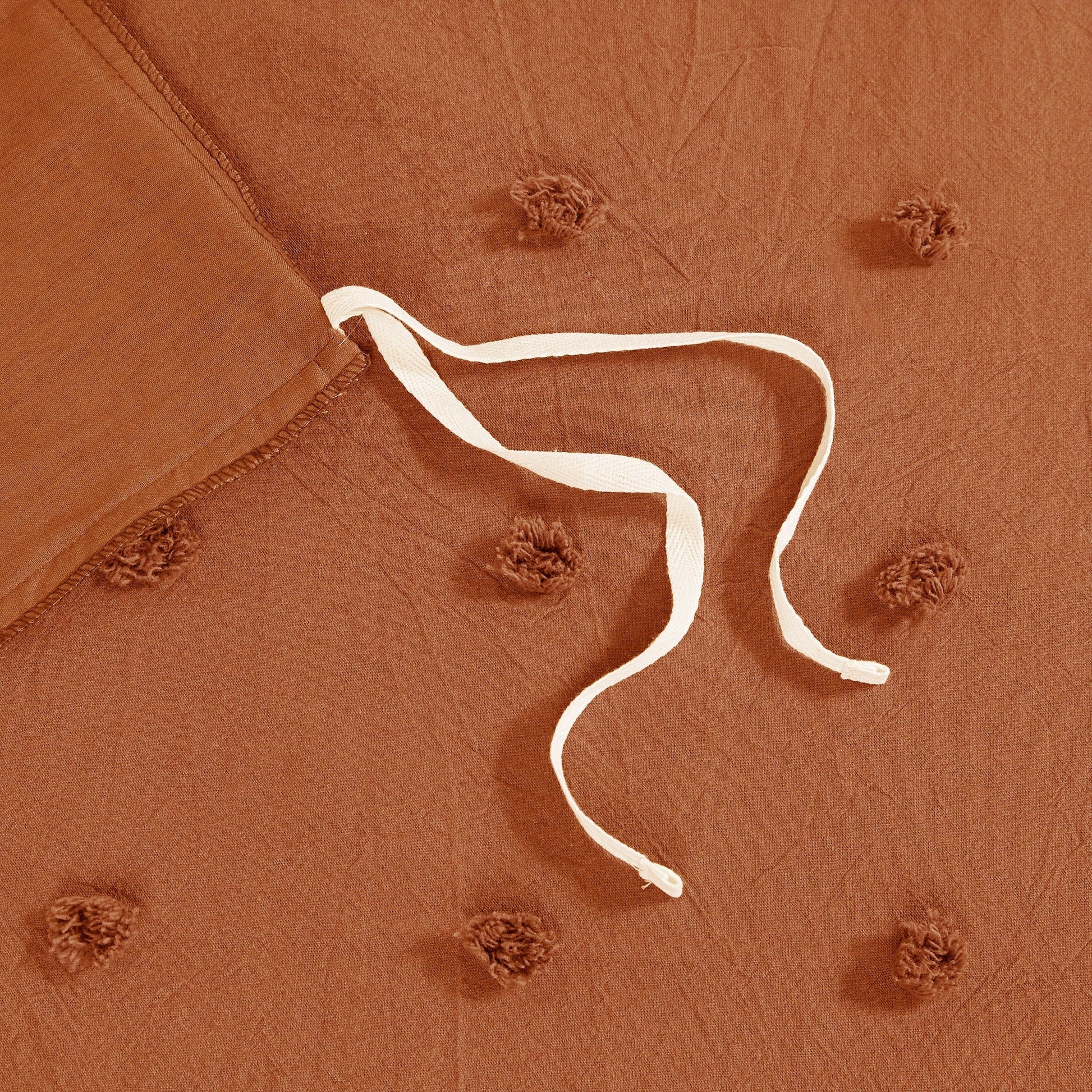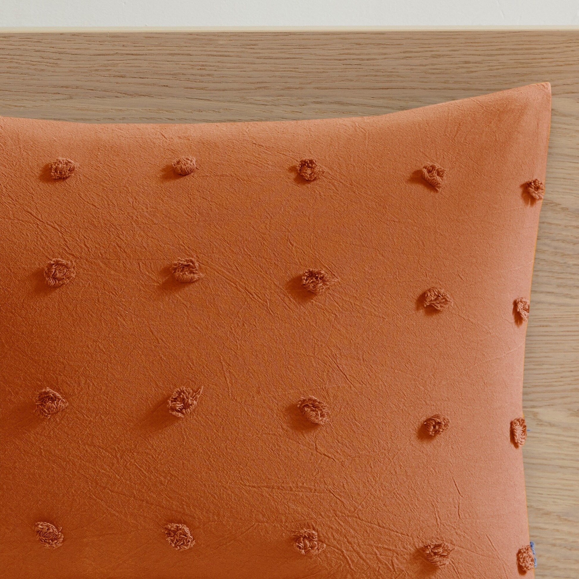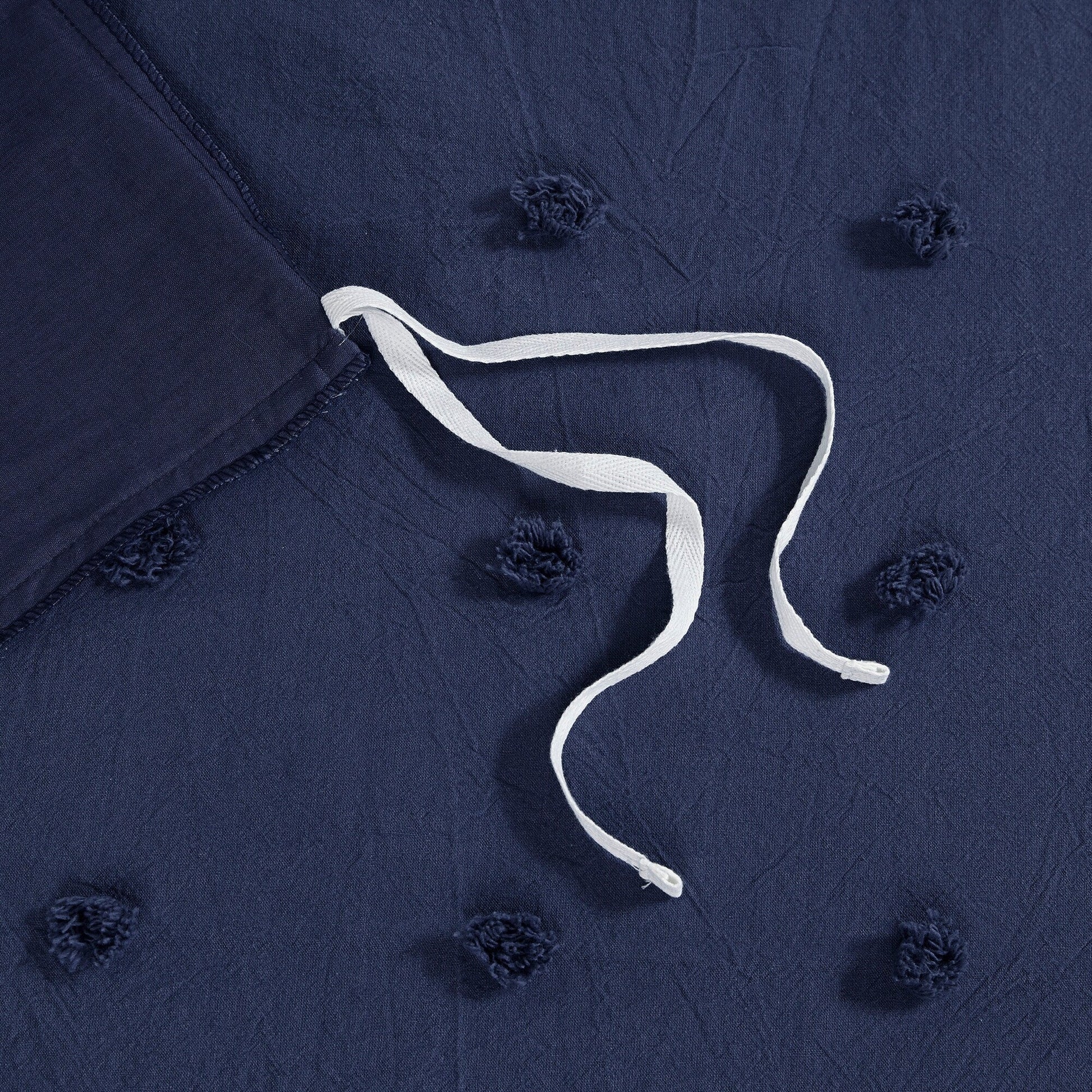 The Intelligent Design Maize Cotton Jacquard Duvet Cover Set features small tufted chenille dots that create a fresh shabby chic look. This duvet cover set brings a soft and charming update to your bedroom.