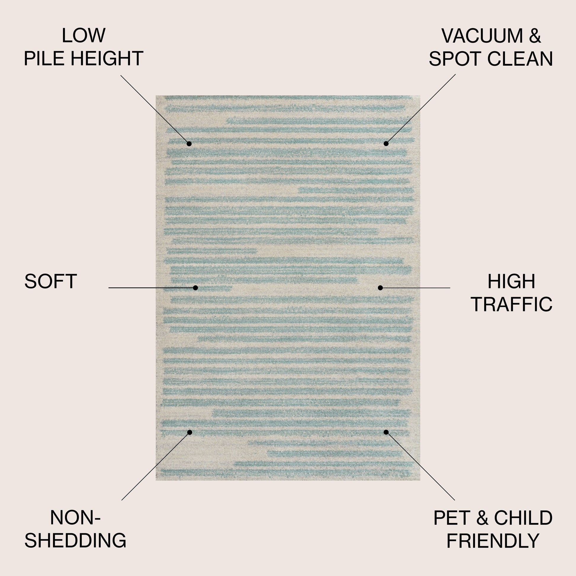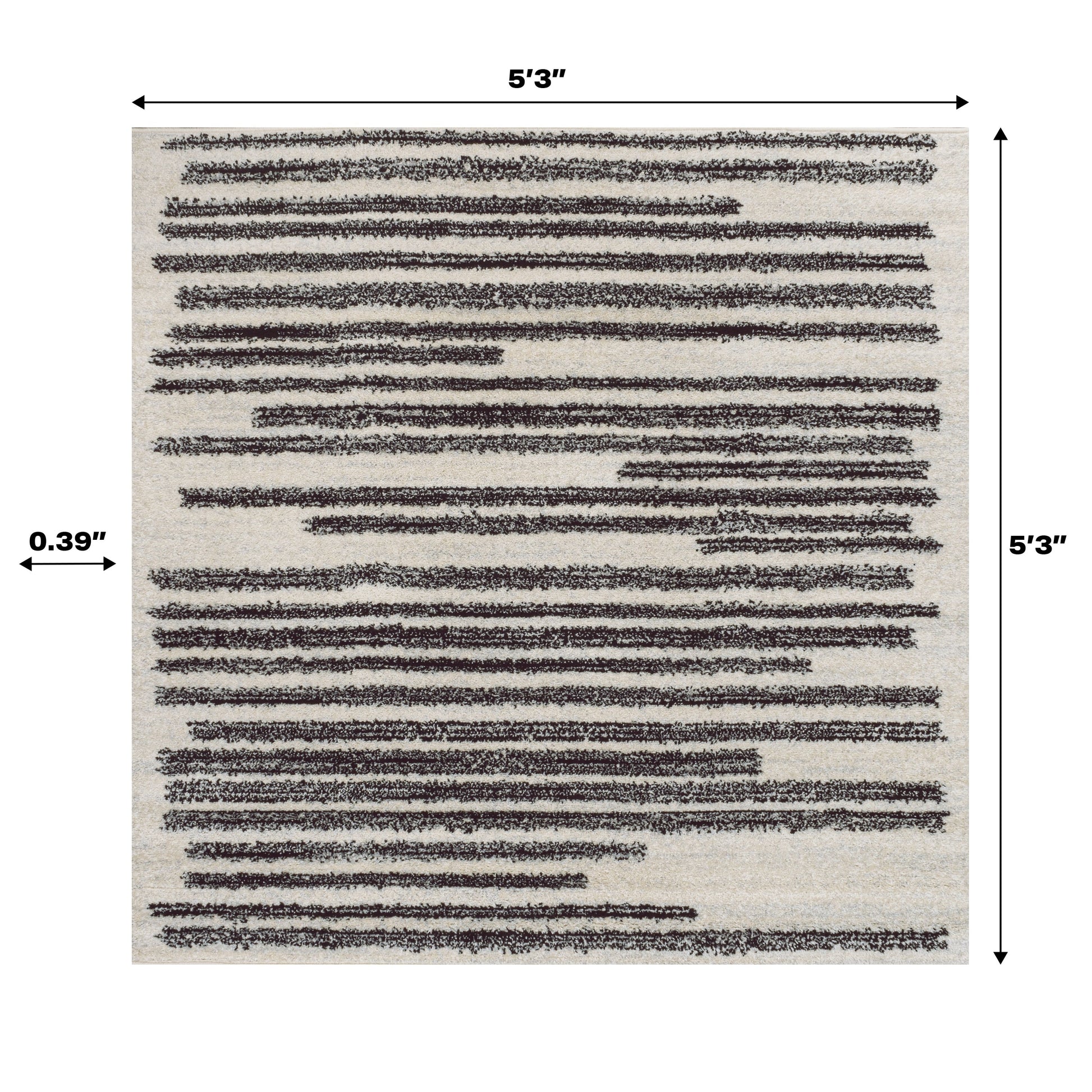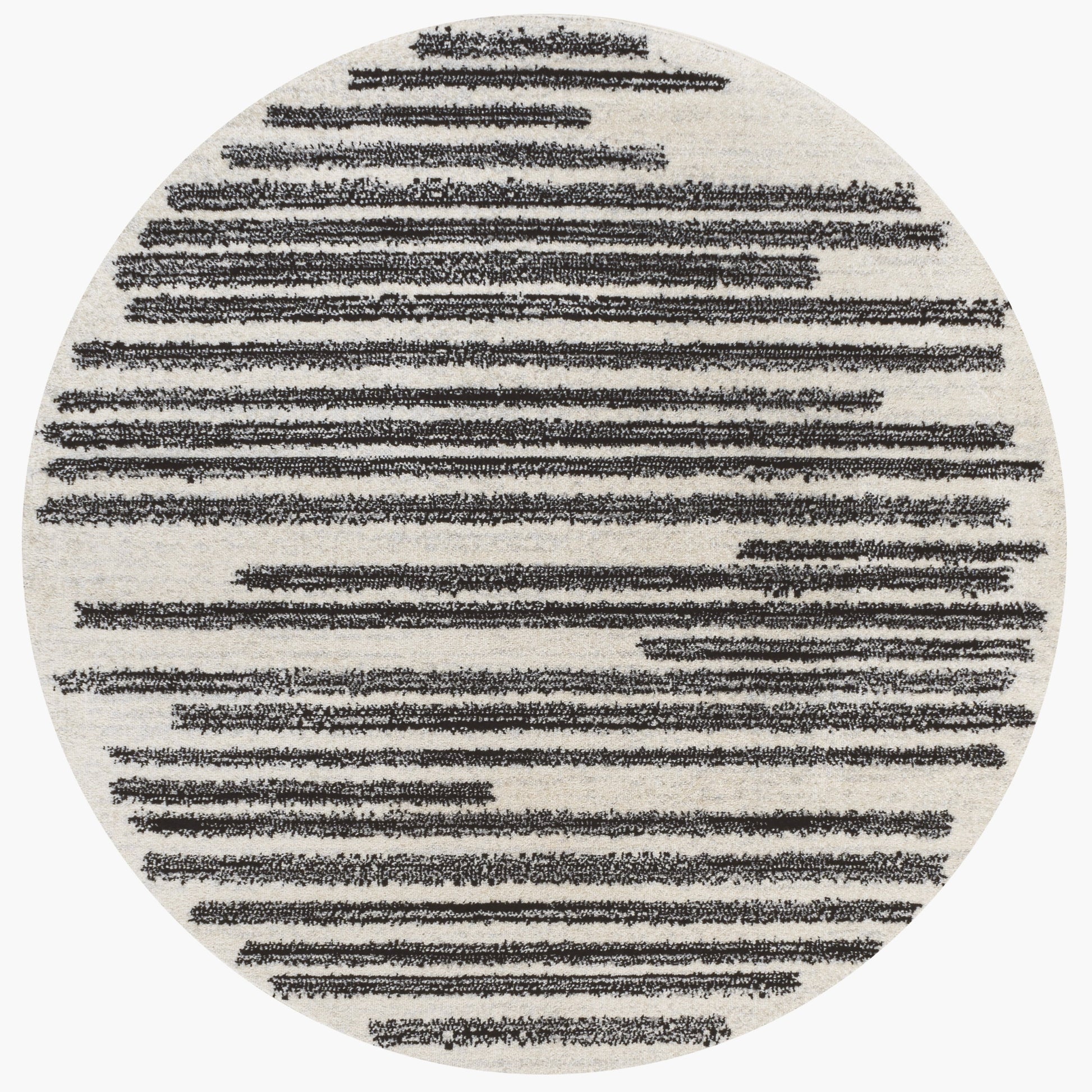 Inspired by vintage Moroccan rugs, our modern striped rug is power-loomed with a short pile. The offset stripe and bar pattern is woven in black on an ivory background; the mingled threads recall traditional handwoven rugs. Add some mid-century style to your home with this easy-care rug.