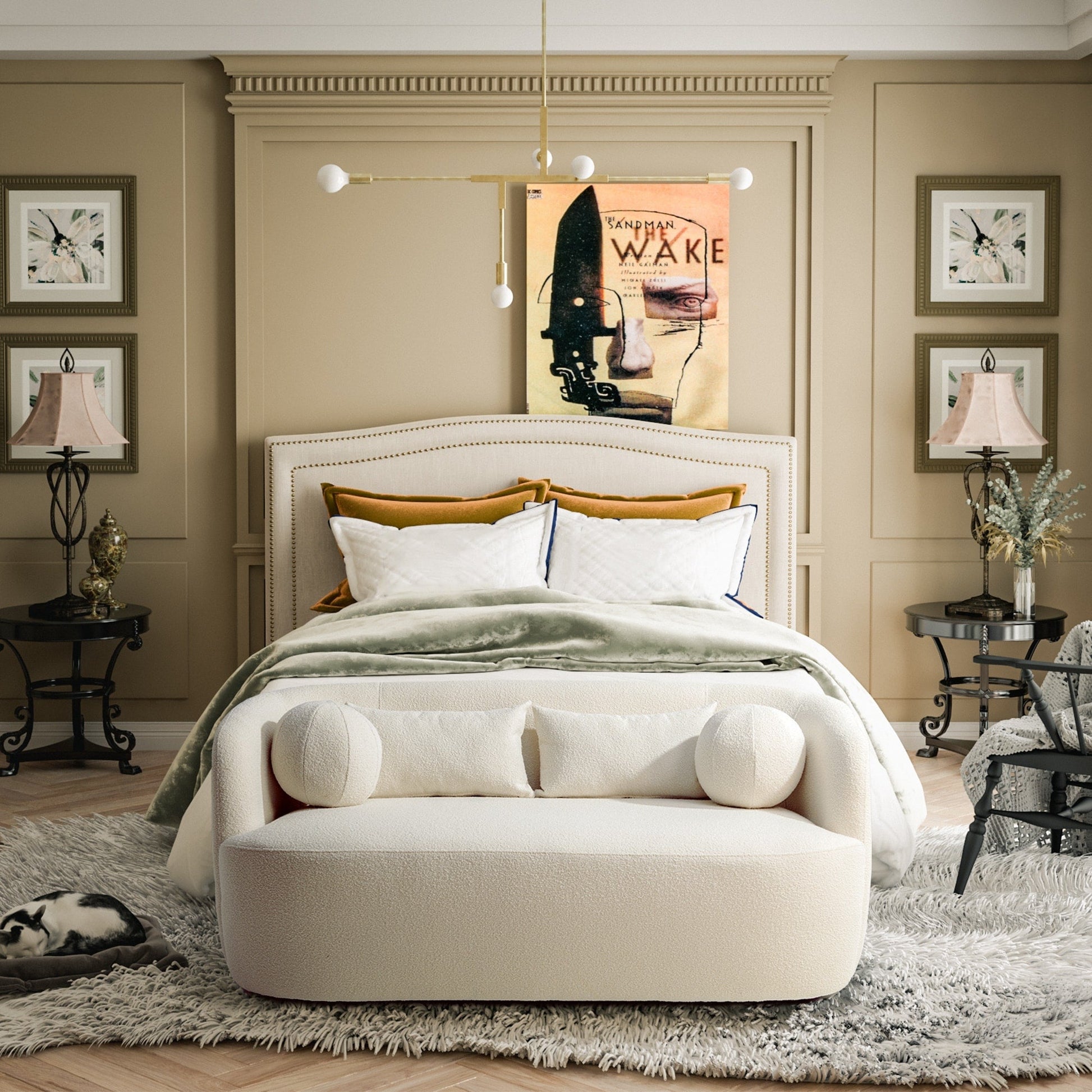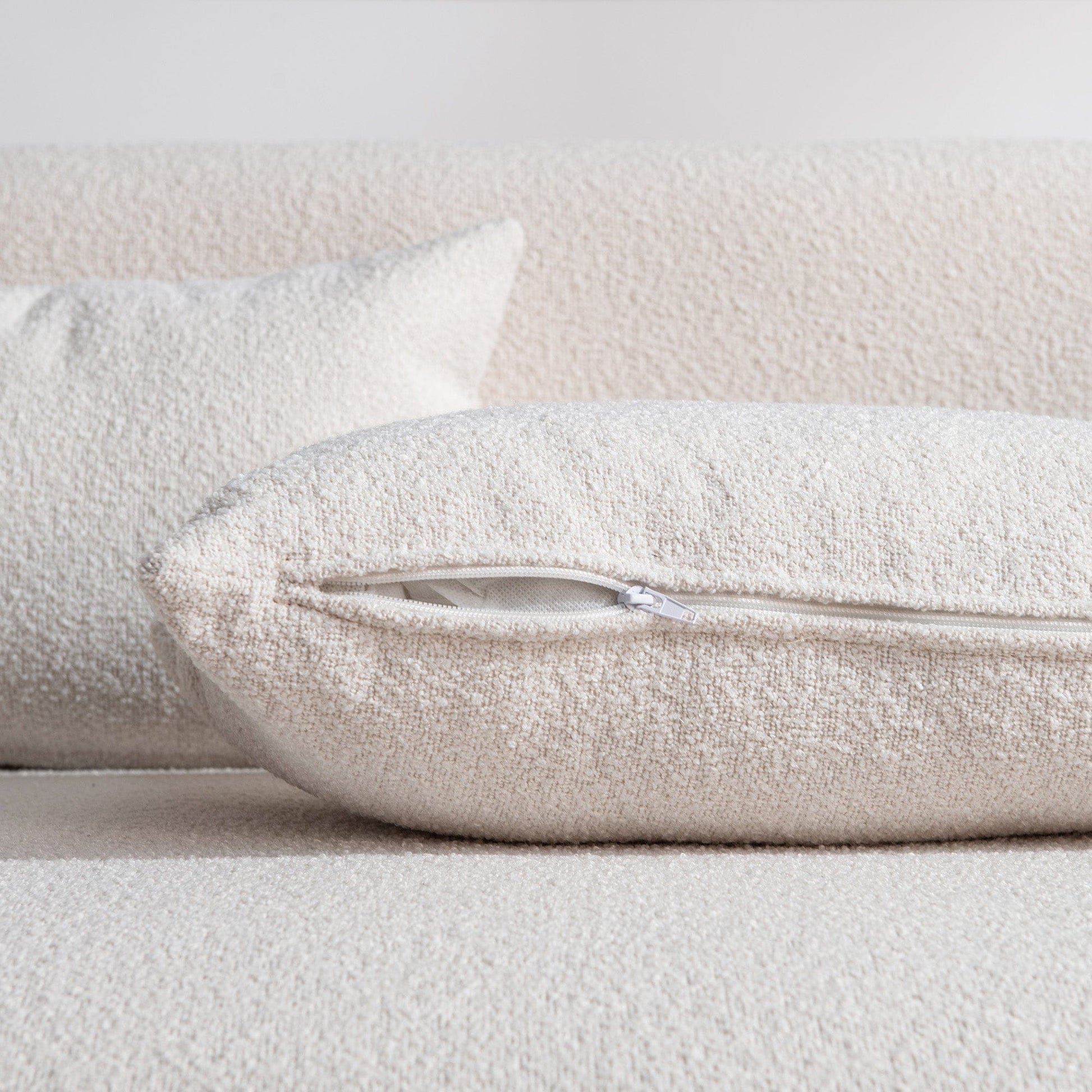 The loveseat sofa is a stunning piece of furniture that draws inspiration from the modern design aesthetics of the middle ages. This sofa comes with four pillows, two square pillows, and two spherical pillows, which provide exceptional comfort and support for the back and neck. With its compact size, this boucle sofa is perfect for small spaces and can accommodate up to two people comfortably. The natural sturdy frame is wrapped in supportive foam cushioning and durable boucle fabric, which ensures both comfort and durability.